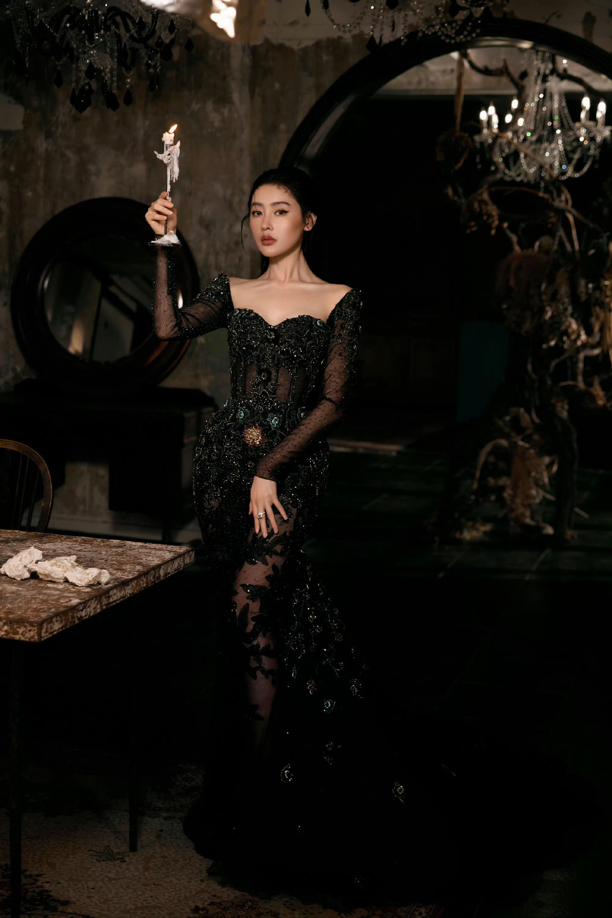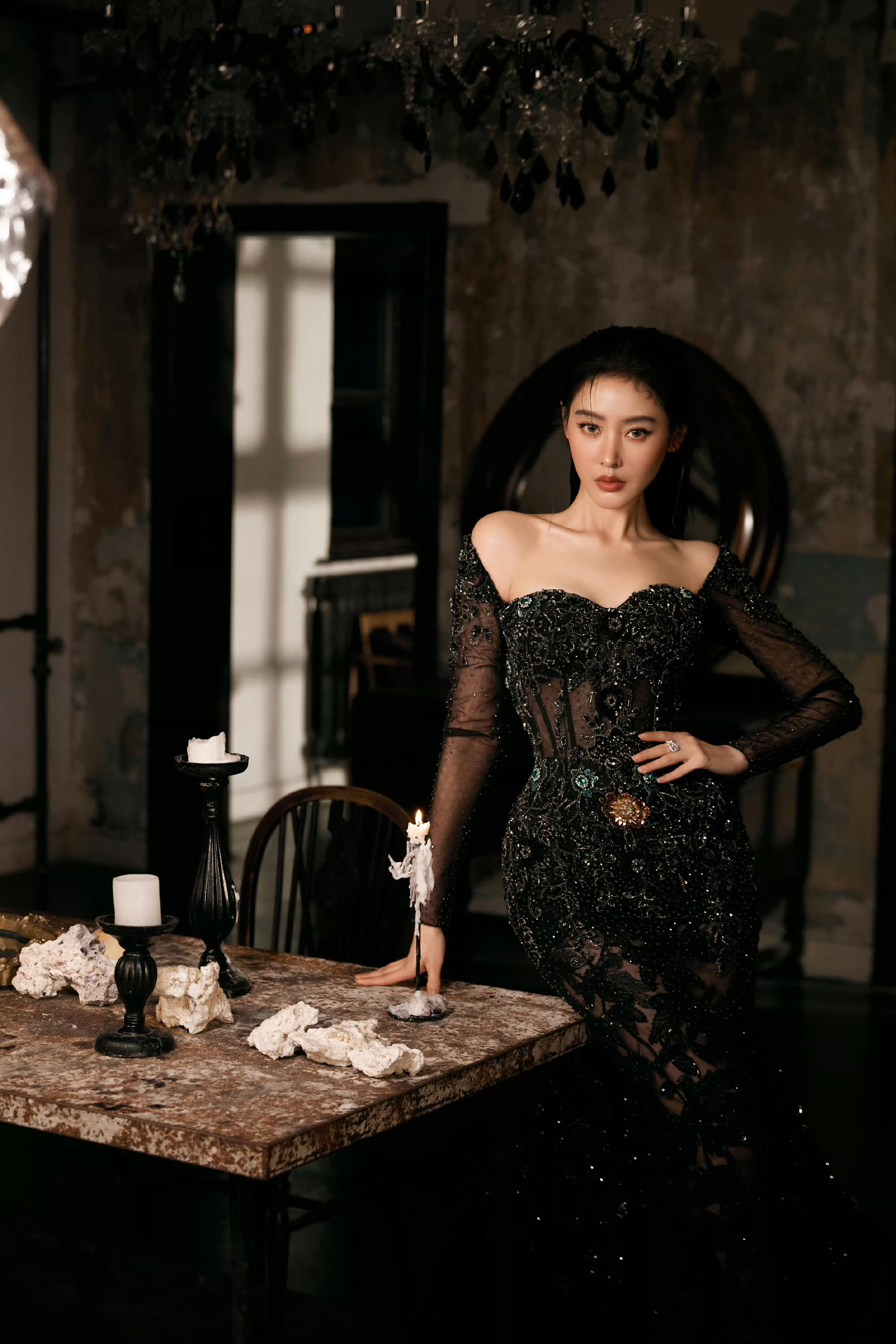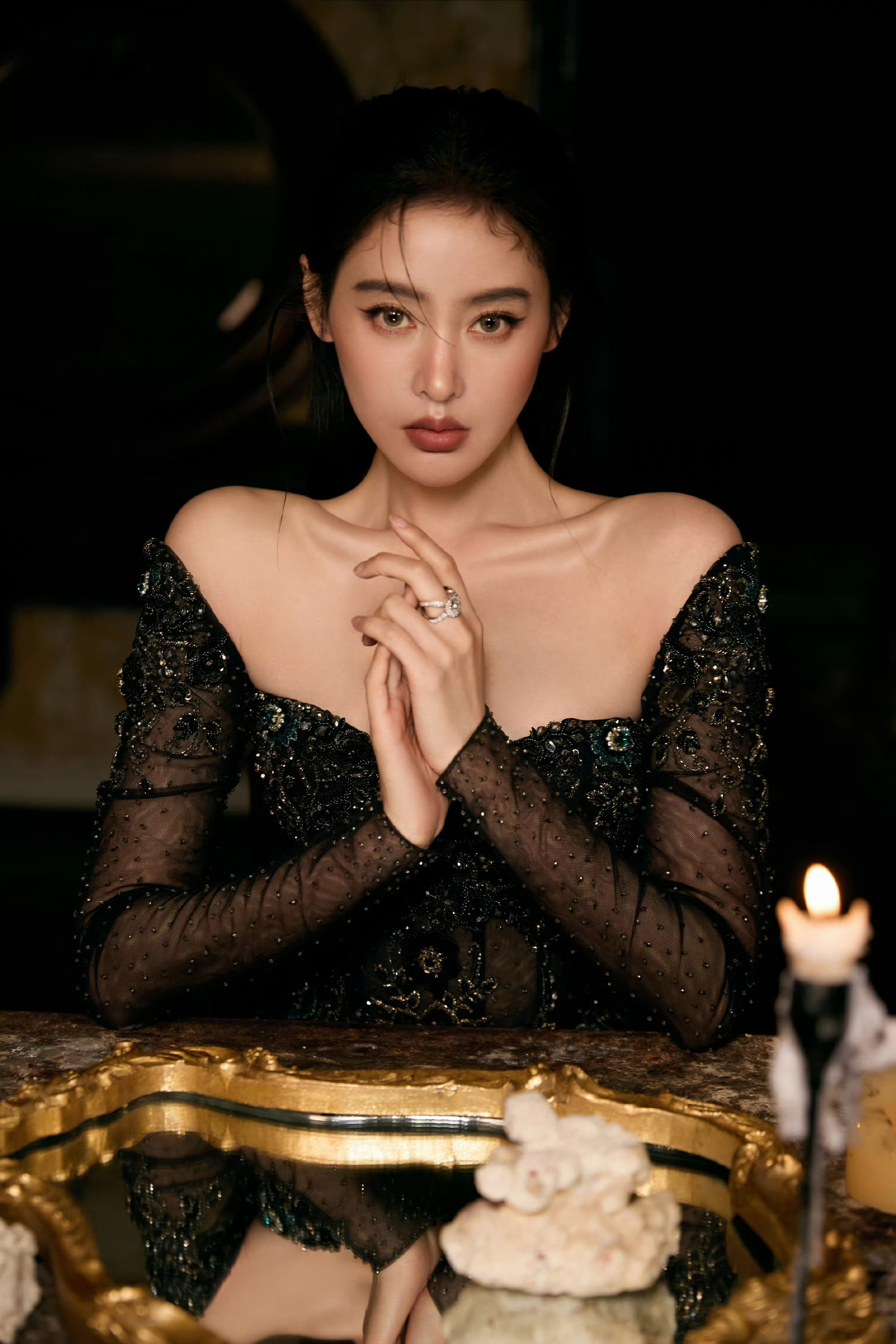张天爱 暗色礼裙缀以星辰,于光影间诠释柔美与力量。