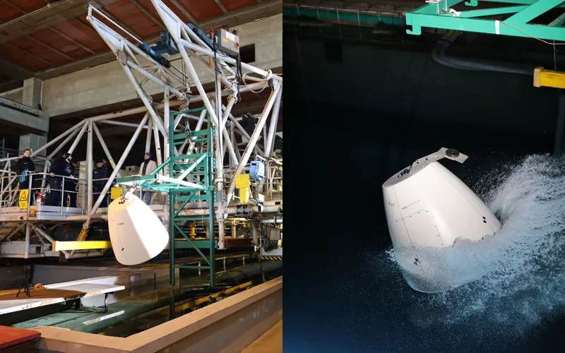 【欧洲探索公司完成Nyx缩比飞船溅落测试】欧洲航天物流初创企业The Exploration Company(欧洲探索公司)近日宣布,其Nyx可重复使用太空飞船的缩比原型机成功完成受控溅落测试。此次测试于1月13日至28日在意大利罗马的国家研究委员会海洋工程研究所(CNR-INM)进行,共实施20次不同高度与速度的入水试验。该公司于2021年成立,正在开发名为Nyx的可重复使用太空舱,初期用于向近地轨道目的地运送并返回货物。后续规划包括向月球轨道及月面运送货物的改型,并探索载人版本;该公司于2025年6月表示,载人型号最早可于2035年投入使用,但强调该时间表取决于"政治决策"。目前,公司首要目标是在2028年前完成首次国际空间站飞行任务,该任务属于欧洲航天局"近地轨道货物返回服务"(LEO Cargo Return Services)计划。验证Nyx的溅落回收性能是实现这一里程碑的关键环节。测试使用由都灵模型制造商Poli Model建造的1:4缩比模型,质量约135千克。作为参照,全尺寸飞船直径4米、高7米。模型外部装有压力传感器、加速度计和陀螺仪,在CNR-IMN研究所长470米、宽13.5米、深6.5米的Umberto Pugliese拖曳水池中进行测试。公司称,静水环境最大化了测试的可重复性。根据2月5日发布的进展通报,测试采集的数据正用于修正流体动力系数和结构裕度,以支持飞船的成功回收。