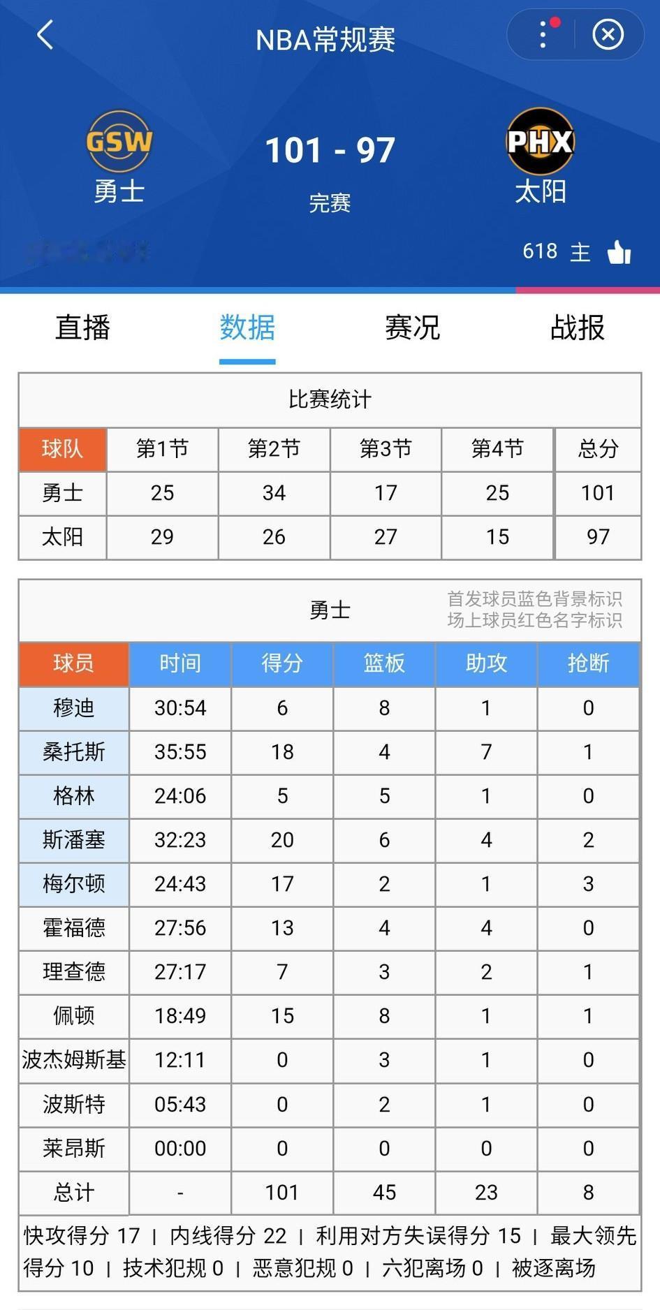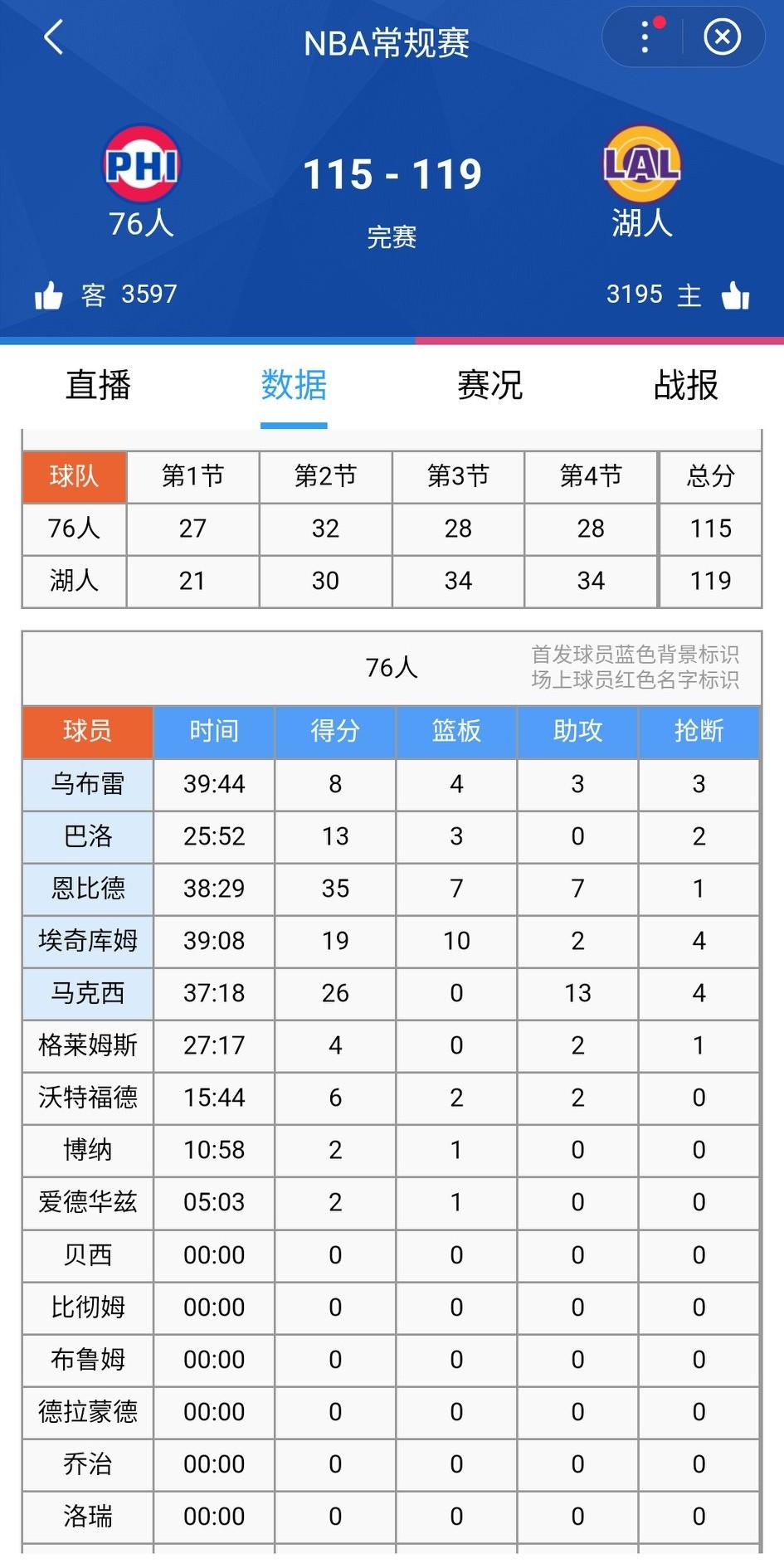 欢乐喜剧队!勇士湖人双双逆转赢球。关键的第四节,勇士末尾打出10-0高潮逆转击败太阳。 同样湖人也是在第四节打出高潮,尽管末尾76人努力挣扎,最终湖人还是守住了胜利。 不过詹姆斯挺喜剧的,实在不适合控球…… 湖人大腿里夫斯只打了25分钟,得了35分。