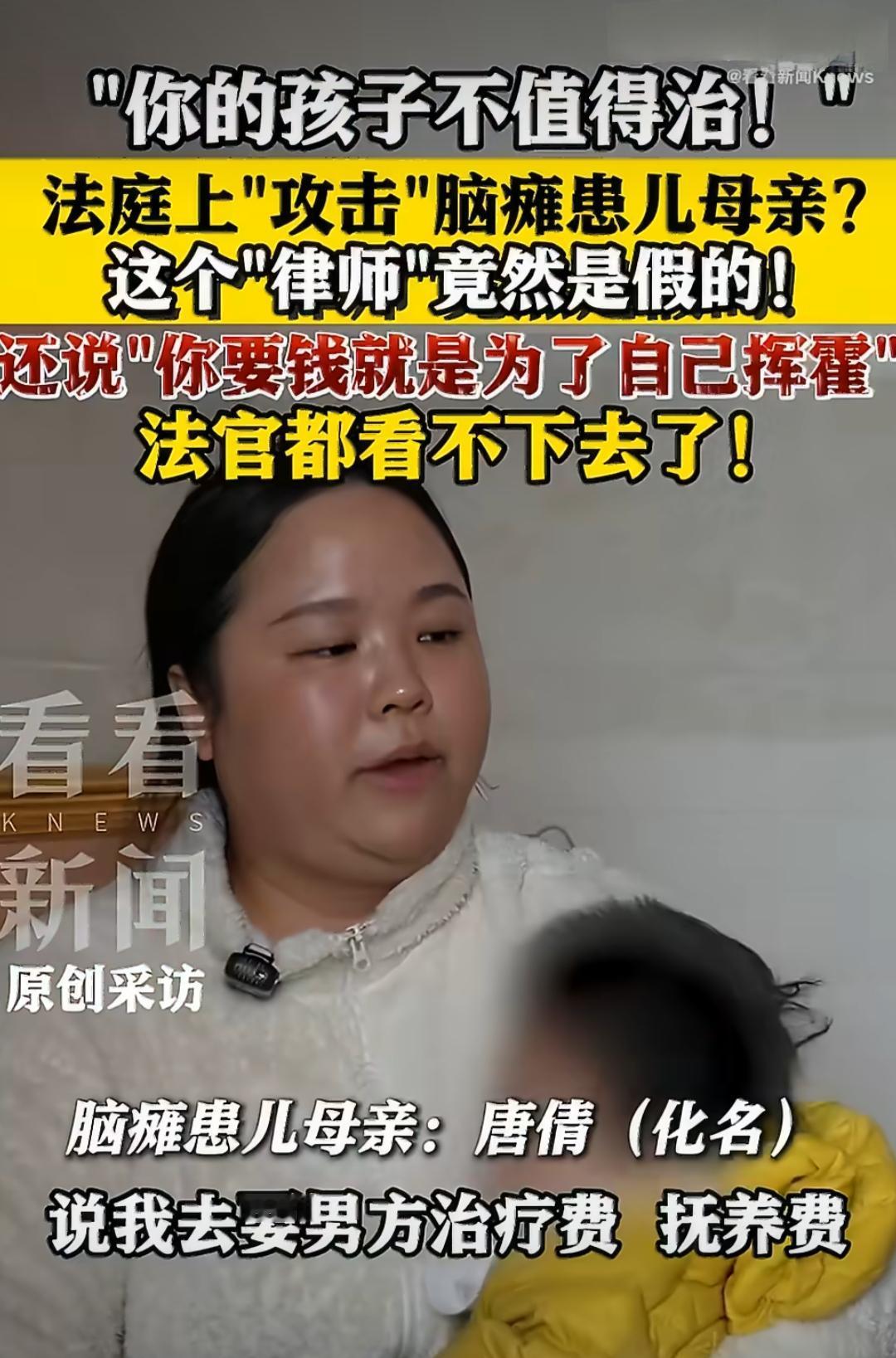 三岁的恩恩是个重度脑瘫患儿,从爸爸黄某失联后,就一直跟着妈妈唐倩相依为命。照顾这样一个特殊的孩子有多难,只有唐倩自己知道,每天的治疗、喂养、护理都要耗费大量的精力和金钱,日子过得捉襟见肘。为了给孩子凑够治疗费和生活费,唐倩实在没办法,只能把失联的丈夫告上法庭,希望能拿到应有的抚养费。 这场官司唐倩最终赢了,但庭审过程中的一幕,却像一根刺扎在她心里,让她和孩子都受到了深深的伤害。丈夫那边所谓的“代理律师”张某霞,在当地还小有名气,总说自己经验丰富,可没想到在法庭上,她根本没想着维护公平,反而对着唐倩和无辜的孩子恶语相向。 唐倩至今想起那些话都忍不住难受,张某霞当着所有人的面说,恩恩这样的重度脑瘫儿根本没有任何治疗价值,还污蔑唐倩索要抚养费和治疗费,其实是为了自己挥霍享受。更过分的是,她竟然说恩恩不会正常吃饭,每个月有两三百块钱的流食费就足够了。唐倩特意准备了给孩子买奶粉、尿不湿的消费截图作为证据,可张某霞却死不承认,说这些截图没法证明是给孩子用的。这话连法官都听不下去了,当场反驳她,这些东西不是给小孩子用的,还能给谁用?可即便如此,张某霞还是不依不饶,用各种刻薄的言语刺激唐倩,完全不顾及这个单亲妈妈照顾患病孩子的艰难,也没有一丝对弱小生命的怜悯。 官司结束一个多月后,唐倩越想越觉得不对劲,张某霞的言行举止根本不像专业的法律工作者,她便申请调取了案件卷宗,还特意去相关社区核实情况,结果让人震惊——张某霞向法庭提交的“社区推荐函”竟然是伪造的。这就意味着,张某霞根本不具备公民代理资格,她就是个彻头彻尾的假律师。 唐倩实在想不通,一张伪造的推荐函,怎么就能骗过法院,让这个没有任何资质的人堂而皇之地走上法庭代理诉讼。更让她意外的是,经过了解,张某霞不仅没有律师资质,还一直在社交平台上大肆包装自己,把自己打造成当地的“知名律师”,在两年时间里竟然代理了超过一百起诉讼案件。 一个本应维护公平正义的法律代理岗位,却被这样一个毫无底线、缺乏良知的假律师占据,她不仅亵渎了法律的严肃性,还利用专业身份的伪装,在法庭上肆意伤害弱者。唐倩的遭遇让人揪心,而张某霞的所作所为,不仅违背了做人的基本道德,更触碰了法律的红线,这样的假律师,终究会为自己的行为付出应有的代价。脑瘫 脑瘫小男孩