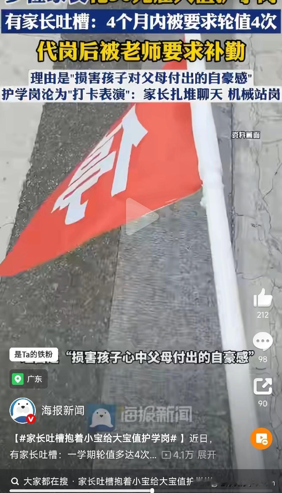 护学岗变“秀场”,谁在形式主义? 广东一家长抱着小宝给大宝站护学岗,直接给我看懵了! 一学期轮4次岗,双职工家庭直呼扛不住,有人花50块雇人代站,还有孕妇38周还被安排执勤,这护学岗到底是护安全还是“糊弄”家长? 咱就说,校门口明明有警察保安,家长岗扎堆聊天、机械打卡,这不是纯纯形式主义吗? 校方说“自愿参与”,结果排班表、接龙一甩,谁好意思不接龙?这不就是变相摊派! 家长吐槽:“心力交瘁,既要上班养家,又要带娃站岗,当爹妈的是超人吗?” 网友神评论亮了: “建议家长站岗时带个折叠椅,主打一个参与感。” “以前是‘别人家孩子’,现在是‘别人家家长’,卷完孩子卷爹妈!” “护学岗变‘打卡表演’,安全没护到,演技倒练出来了!” 但仔细想想,问题真在家长吗? 学校资源不足,就把压力转嫁给家庭? 说真的,护学岗不是“家长秀”,安全该是学校的底线,更是社会的责任! 别让形式主义寒了家长的心,家校合力不是“家长卖力”,该专业的人干专业的事! (文章素材来自海报新闻,侵删)