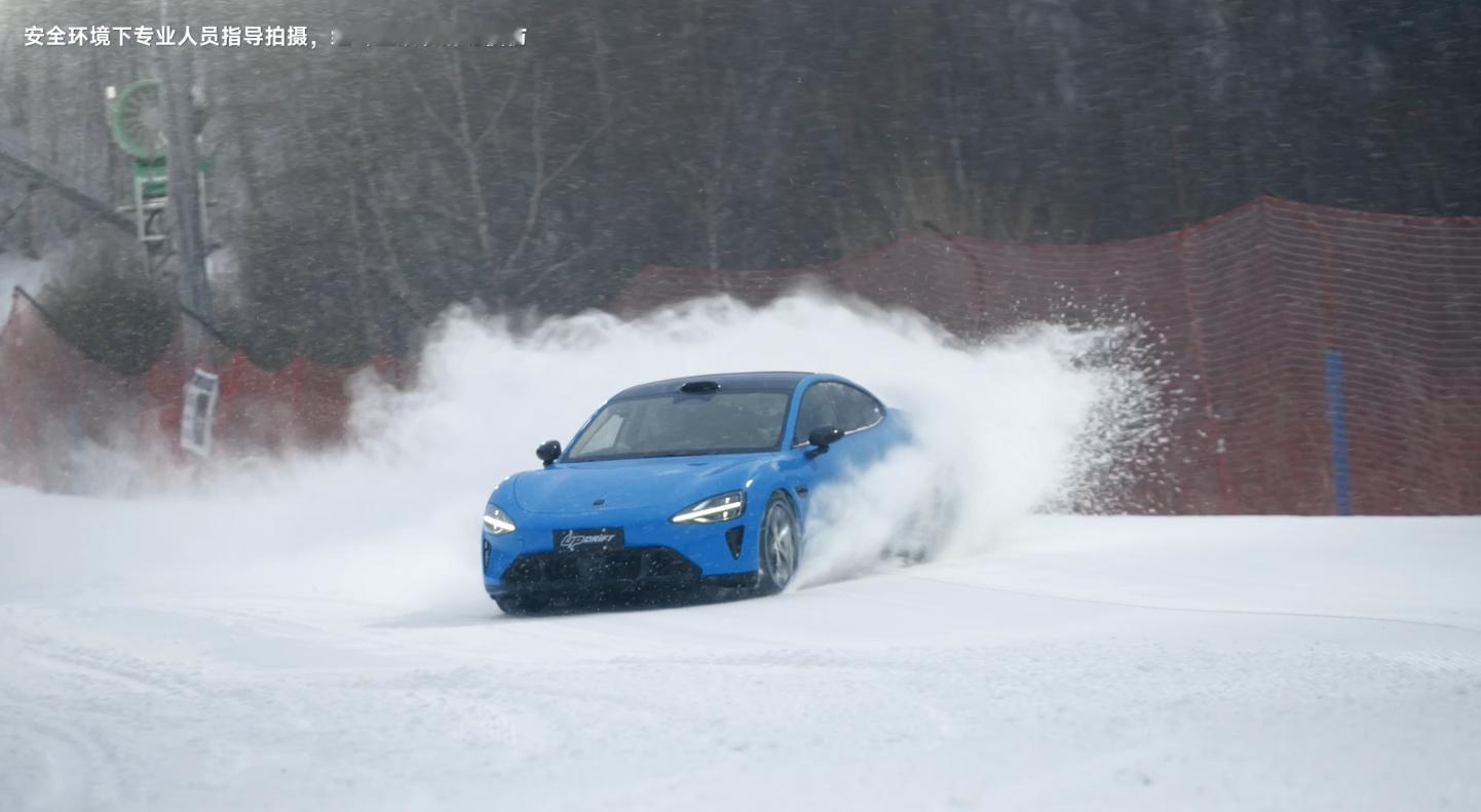 这条视频,说实话第一眼是被画面吸住的。卡布里蓝的新 SU7,配上崇礼的雪景,车一甩起来,冰雪飞溅,可以说「电影感十足」。那种在雪道里连续漂移、飞坡、重心来回切换的镜头,以前更多是在海外漂移车手、专业改装车上看到,现在换成一台量产的中国车,冲击力还是挺强的。