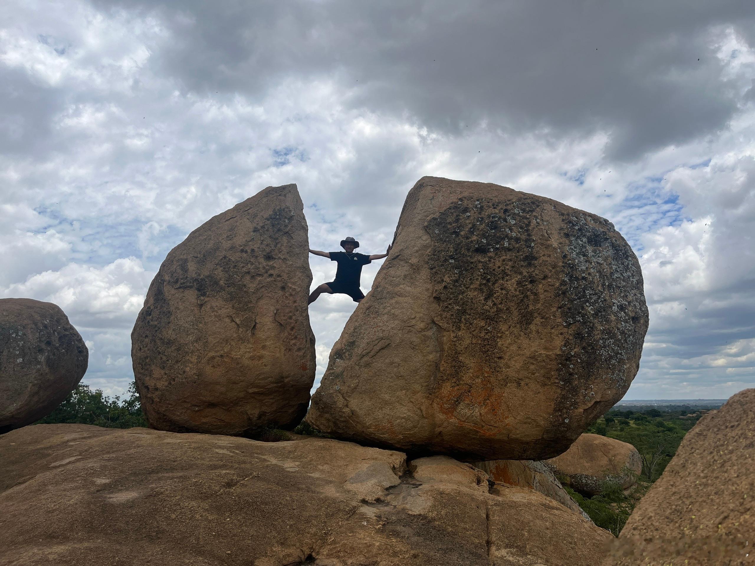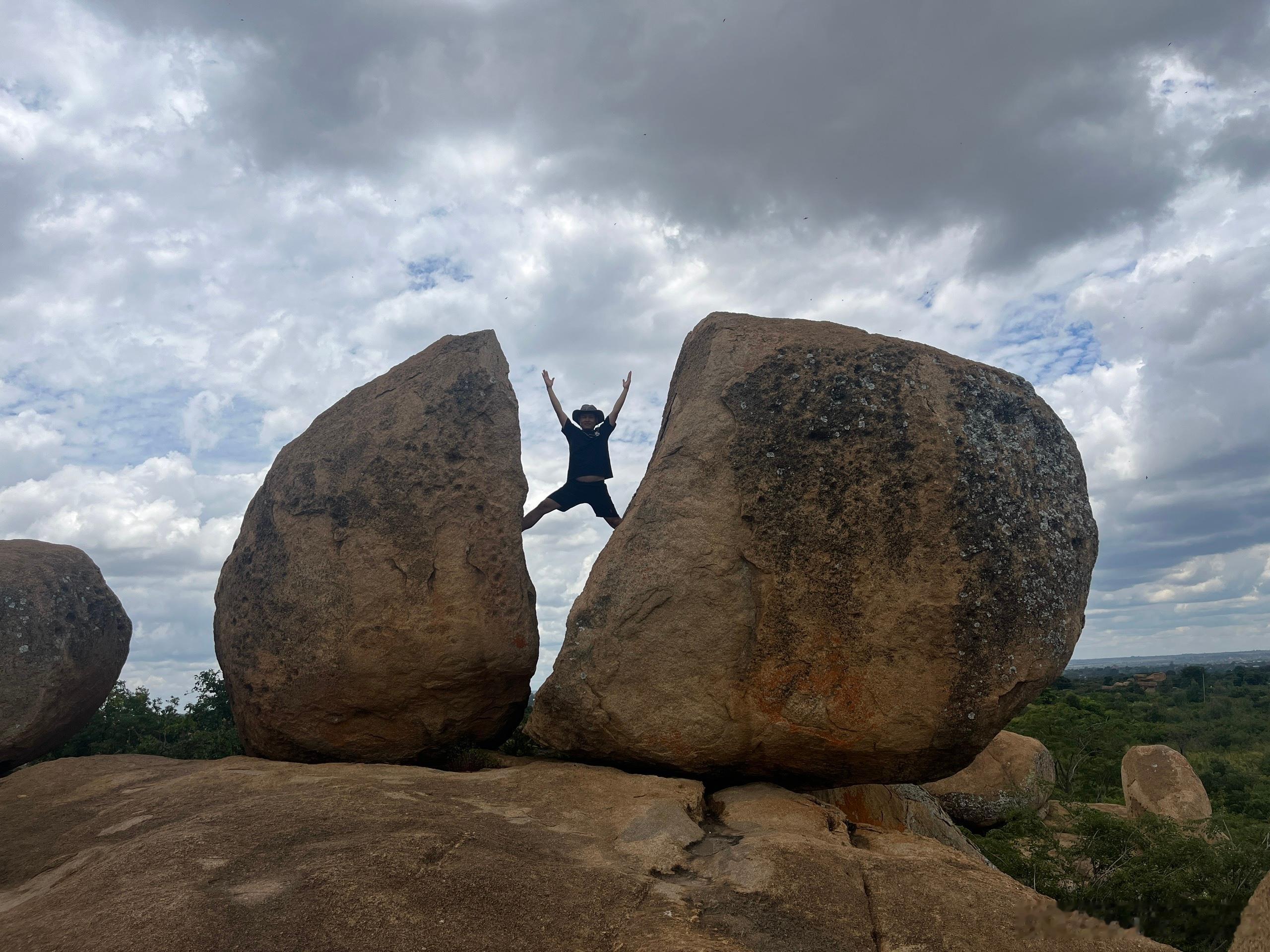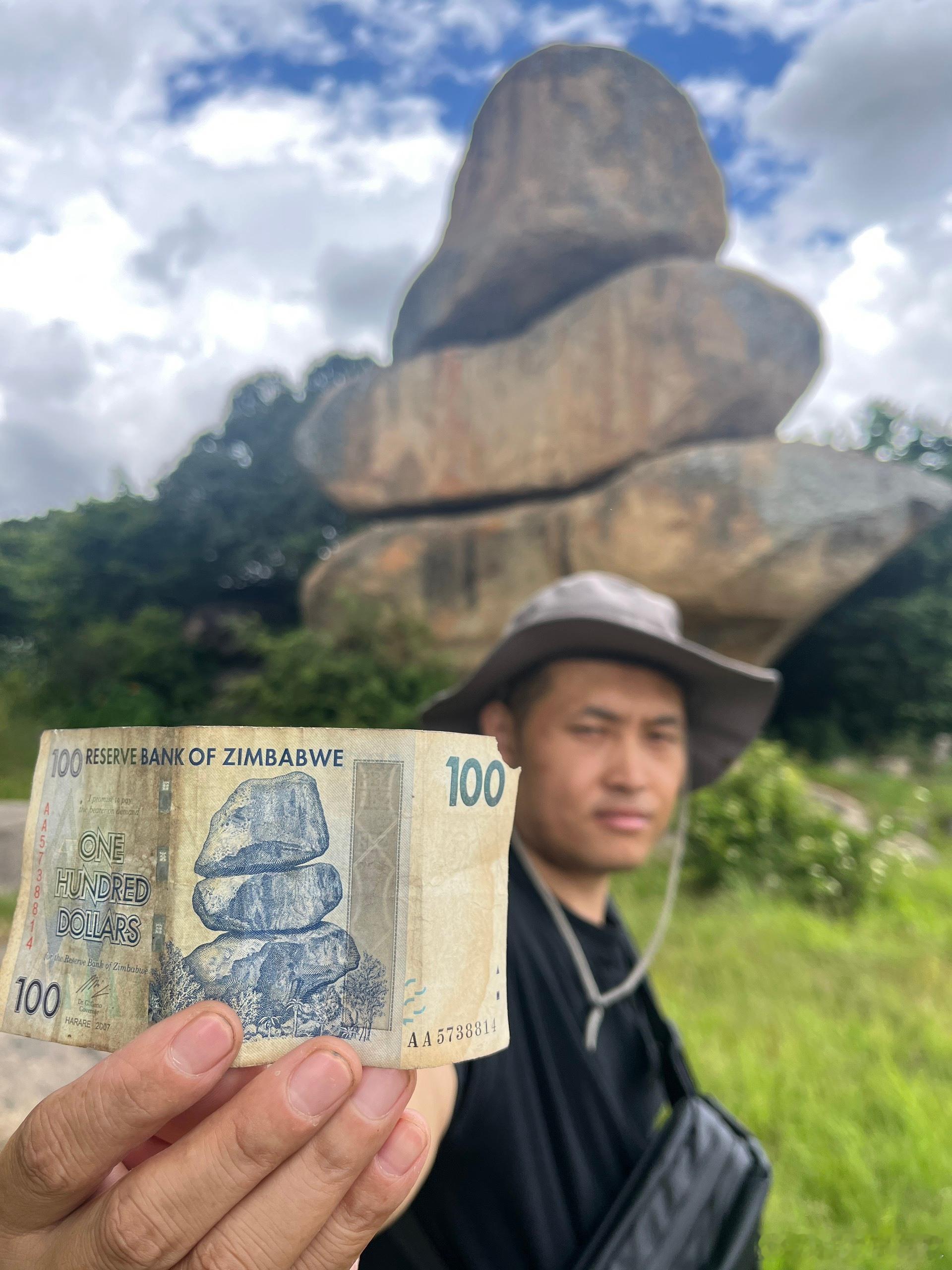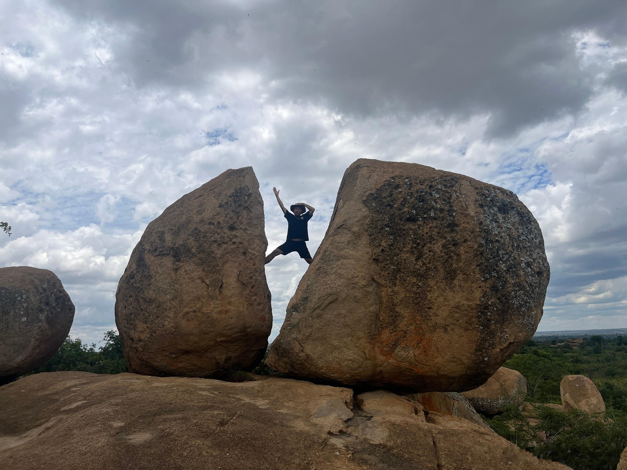 津巴布韦的钱币上,有个三块石头叠加的照片,为了拍这个照片,简直把我们累疯了,找了块石头做pose,确实非常出片,我骑着自行车,管黑人兄弟借了两次钱,这个哈拉雷周围的打卡点,如果你不来,不拍一张我这种姿势的照片,你们津巴布韦白来了!跟你们看图! 津巴布韦·哈拉雷