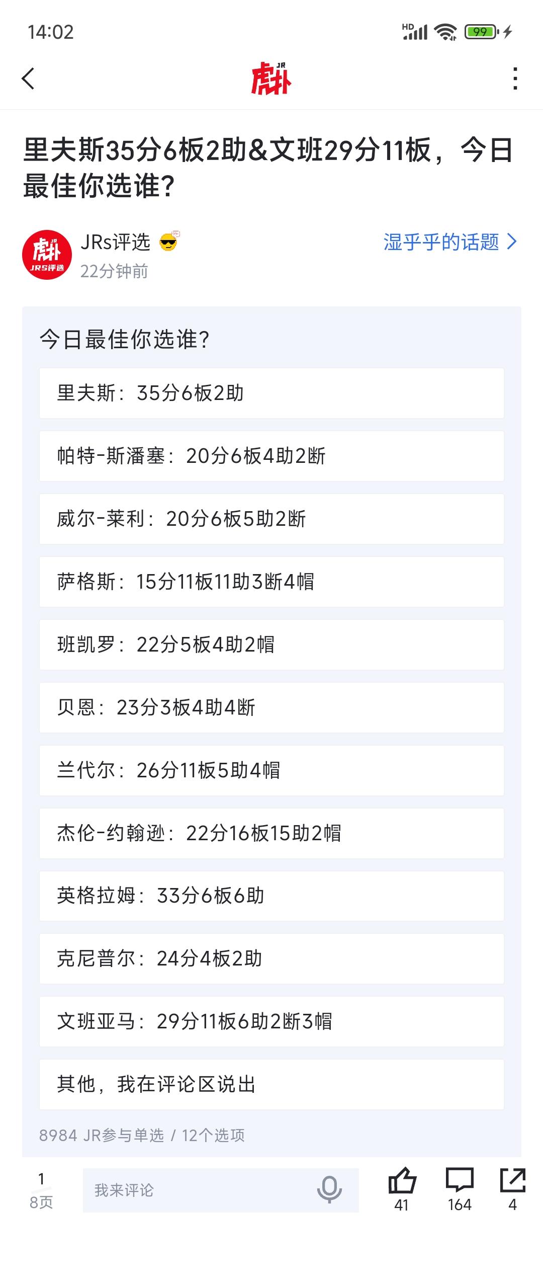 今日最佳NBA球员是里夫斯吧! 这家伙真争气,东契奇受伤立马扛着球队。 自己也才刚复出,35分6篮板。 湖人还就是有三巨头,里夫斯是其中之一,要是再来一次完美转会,湖人可以争夺总冠军。[得意]