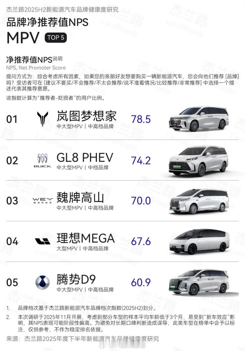岚图梦想家在杰兰路公布的新能源MPV中净推荐值(NPS)高达 78.5%,其中84%的推荐者将“产品体验”列为核心理由,大家怎么看?经常开车的人才知道的含金量