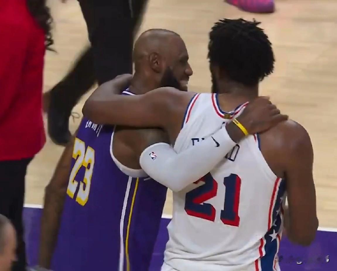 绝对的尊重!恩比德谈詹姆斯: “勒布朗是我所尊重的大哥。” “他是伟大的球员。” “这点毋庸置疑。” “我很高兴看到他在健康打球。” “我对他充满敬意。” 赛后,恩比德第一时间跟老大哥詹姆斯拥抱致意,互相送上祝福! 二人搭着肩,聊得非常愉快,笑得很开心,关系是真的不错! 这样的画面很和谐,是所有球迷都希望看到的! 巴黎奥运会的时候,恩比德在美国队的时候,真的是被詹库杜所折服! 三个老头带恩比德拿下了一块宝贵的金牌! 现在恩比德遇到老詹,那是绝对的尊重! 这也是对老詹的一种最大认可! 恩比德今天厉害啊,35分7篮板7助攻2盖帽1抢断,有种重回巅峰的意思了!