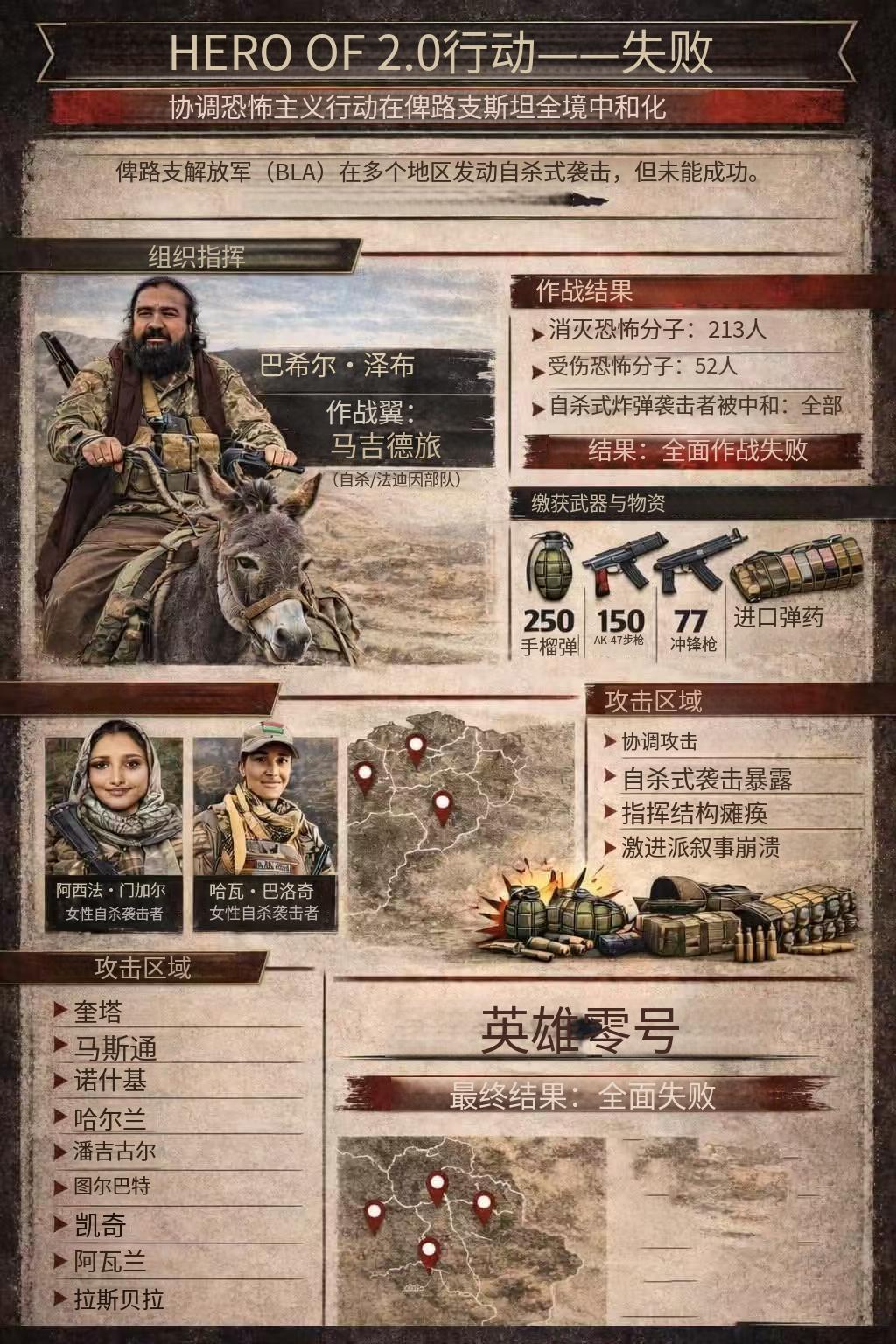 巴基斯坦反恐罕见大捷!击毙216名俾路支武装,为中国同胞复仇 巴基斯坦安全部队近期发起的大型反恐行动取得重大胜利,成功粉碎一起针对多座城市的大规模袭击计划,不仅重创当地恐怖势力,更兑现了为遇难中国同胞报仇的承诺,进一步筑牢了中巴合作项目的安全防线。 据巴基斯坦官方通报,此次反恐行动战果显著,自2026年1月29日启动至2月5日结束,共击毙俾路支武装分子216人,行动期间有22名巴安全部队人员牺牲、36名平民(含妇女儿童)遇难,缴获各类美制先进武器装备及大量外国制造的弹药一批,与武装分子的惨重损失相比,巴基斯坦安全部队的作战行动精准高效,有效遏制了恐怖势力的嚣张气焰。 此次袭击的核心发起者是俾路支解放军,该组织已被巴基斯坦、美国、英国、欧盟等国家和地区列为恐怖组织。其长期针对中巴合作项目实施恐怖袭击,配备多种先进武器,其中部分带有热成像瞄准镜的美制步枪,是2021年美国从阿富汗撤军后遗留的军事设备,经非法渠道流入该组织。 此外,该组织长期获得外部势力的资金和庇护,核心目的就是破坏中巴合作项目,阻碍地区发展。 俾路支解放军重点针对的目标之一,是作为中巴合作核心项目的瓜达尔港。 这座位于巴基斯坦西南部俾路支省的港口,由中国投入巨资打造,是地区互联互通的重要节点,不仅能为中国能源运输提供新的通道,还能带动当地就业,改善民生,让昔日偏远的小渔村逐步发展成为重要的物流枢纽。 该组织急于破坏这座港口,核心原因就是担心发展带来的安宁,会压缩其极端思想的传播空间,此次大规模袭击并非偶然,背后有着复杂的地区背景。巴基斯坦俾路支省地处西南边境,与伊朗、阿富汗两国接壤且南临阿拉伯海,地形以山地沟壑为主,复杂的地势给当地安全部队的清剿工作带来很大阻碍。 长期以来,该地区因资源分配、贫困等问题,分离武装乱象频发,俾路支解放军多次对中巴合作项目工地发动袭击,其中2024年10月6日卡拉奇恐袭事件造成2名中方人员遇难、1名中方人员受伤,该组织宣称对此次袭击负责。此次该组织策划对巴基斯坦多座城市发动袭击,其中就包括奎达、瓜达尔等关键地点,企图制造大规模混乱。 巴基斯坦安全部队之所以能成功粉碎此次袭击计划,关键在于近年来战斗力的显著提升,多年来,中巴双方多次开展联合反恐演习,中方从装备、战术、情报等多个方面,向巴基斯坦安全部队提供帮助,补齐了其在情报收集、装备水平和协同作战方面的短板,让其摆脱了以往清剿行动中被动的局面。 此次反恐行动中,巴基斯坦安全部队充分运用了先进的作战装备,实现了对武装分子的精准监控,提前锁定了武装分子的集结地和行动路线。行动中,安全部队采取高效清剿战术,一步步将武装分子包围,最终彻底粉碎其袭击计划,为遇难的中国同胞报了仇。 此次反恐大捷虽然重创了俾路支解放军的有生力量,对地区恐怖势力形成有力震慑,但也需明确,俾路支省的问题尚未彻底解决,贫困、资源分配不均以及外部势力插手等问题,仍是当地乱象的根源。 未来,中巴双方将继续深化反恐合作,共同守护合作项目安全,推动地区实现和平稳定发展,让恐怖势力无处藏身。