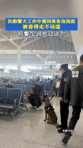 陕西,一男子在火车站候车时,觉得饿,便泡了一桶泡面吃,谁知,一只路过的警犬闻到味儿后,直接蹲在男子面前走不动道,旁边的训导员只能尴尬解释“它没吃过这个”。 有网友表示:其实大家之所以觉得这么好笑,不只是因为警犬的模样可爱,更因为在火车站这个满是疲惫和离别焦虑的地方,这只被泡面馋住的警犬,打破了那种紧绷的氛围,平时我们看到的警犬,都是严肃的守护者,可在那一刻它不过是一只对世界充满好奇、对好吃的充满渴望的小动物,那种反差感,既好笑又温暖。 其实警犬也是普通的狗狗,经受过上万次严苛训练,把服从刻进骨子里,却依然会被人间烟火气的香味打动,这份反差才最戳人。这短短十秒的小美好,让大家看到了警犬铁血之外的柔软,也成了旅途里最治愈的小插曲。 警犬可不能随便吃东西,真正受过良好训练的警犬,外人给什么都不吃,只有训练它的人给它才吃。这个警犬可能还小还没毕业。 对此大家怎么看呢
