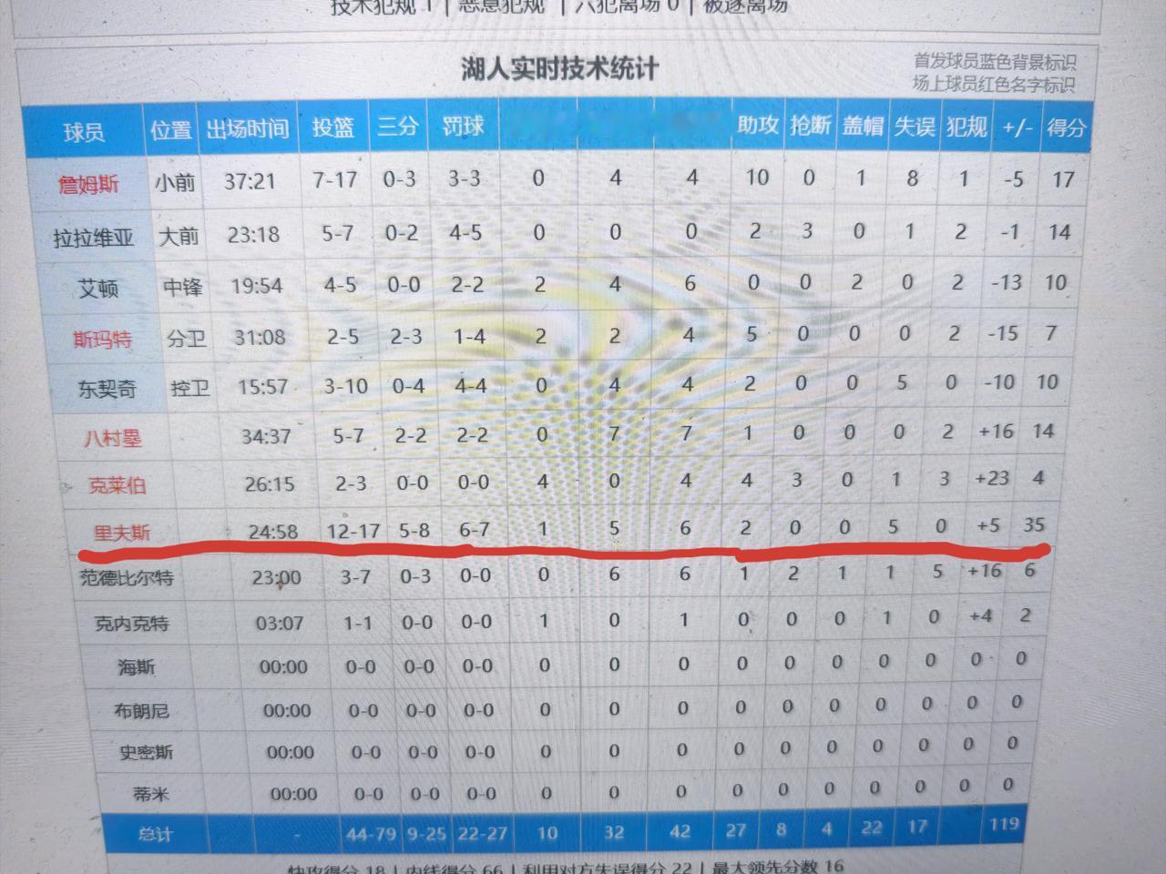 现在的湖人队----谁才是真正的核心? 1 詹姆斯---肯定不是!毕竟已经42岁了老了跑不动了进攻时有时无时灵时不灵,防守更是只能依靠眼神,对位时经常被对手一步过,他的体能最多能坚持15分钟,打多了就成了卧底!詹姆斯在球场只能是锦上添花,绝对不能雪中送炭,核心?N0! 2 东七七---东七七每场必砍+40+10+10的三双数据…,但是效率极低!根本就没有防守或者是不愿意防守!自己砍下40分但是让对手砍下45分甚至是50分…最终还是输了球,这个赛季多场比赛都出现了这种局面,湖人把他当建队基石来培养绝对是错付了…,到头来结局恐怕是竹篮打水一场空!球队核心?No! 3 里夫斯---有犀利的突破得分,有精准的三分,有近90%的罚球命中率!只要有里夫斯的比赛,湖人赢得非常轻松,队友轻松主教练心里也有底!只要里夫斯伤停,湖人队必是神一场鬼一场的让人提心吊胆!---里夫斯才是湖人队的核心!