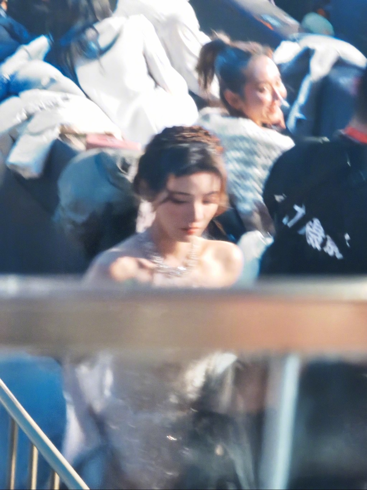 张天爱跟素人合影,胯真的好宽,大宅院似的