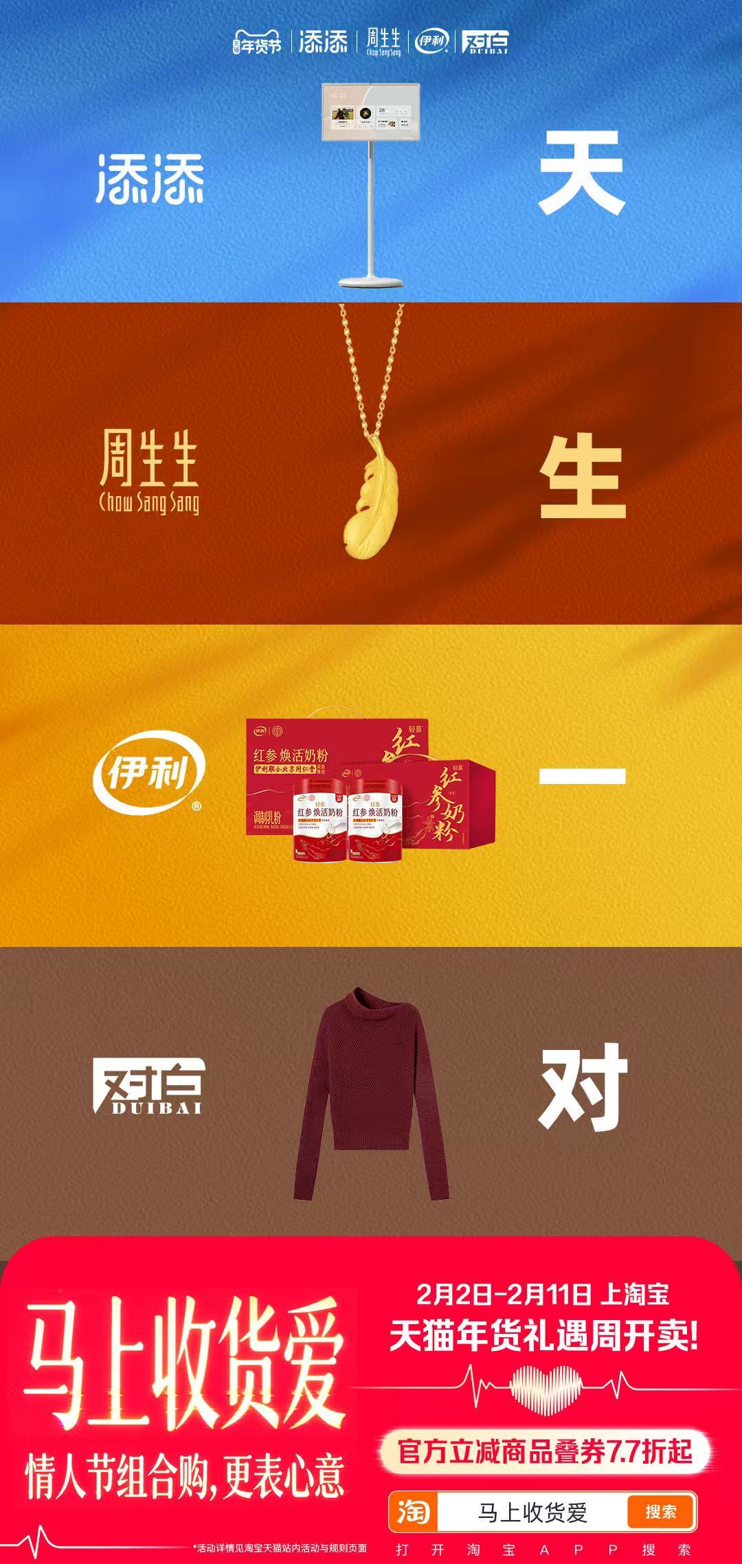 上淘宝马上收货爱当代年轻人送礼不用愁!这些礼物就是浪漫“标准答案”,必须列入清单~ 2月2日-2月11日,天猫年货礼遇周开卖,上淘宝搜【马上收货爱】,官方立减叠券7.7折起,情人节组合购超懂心意