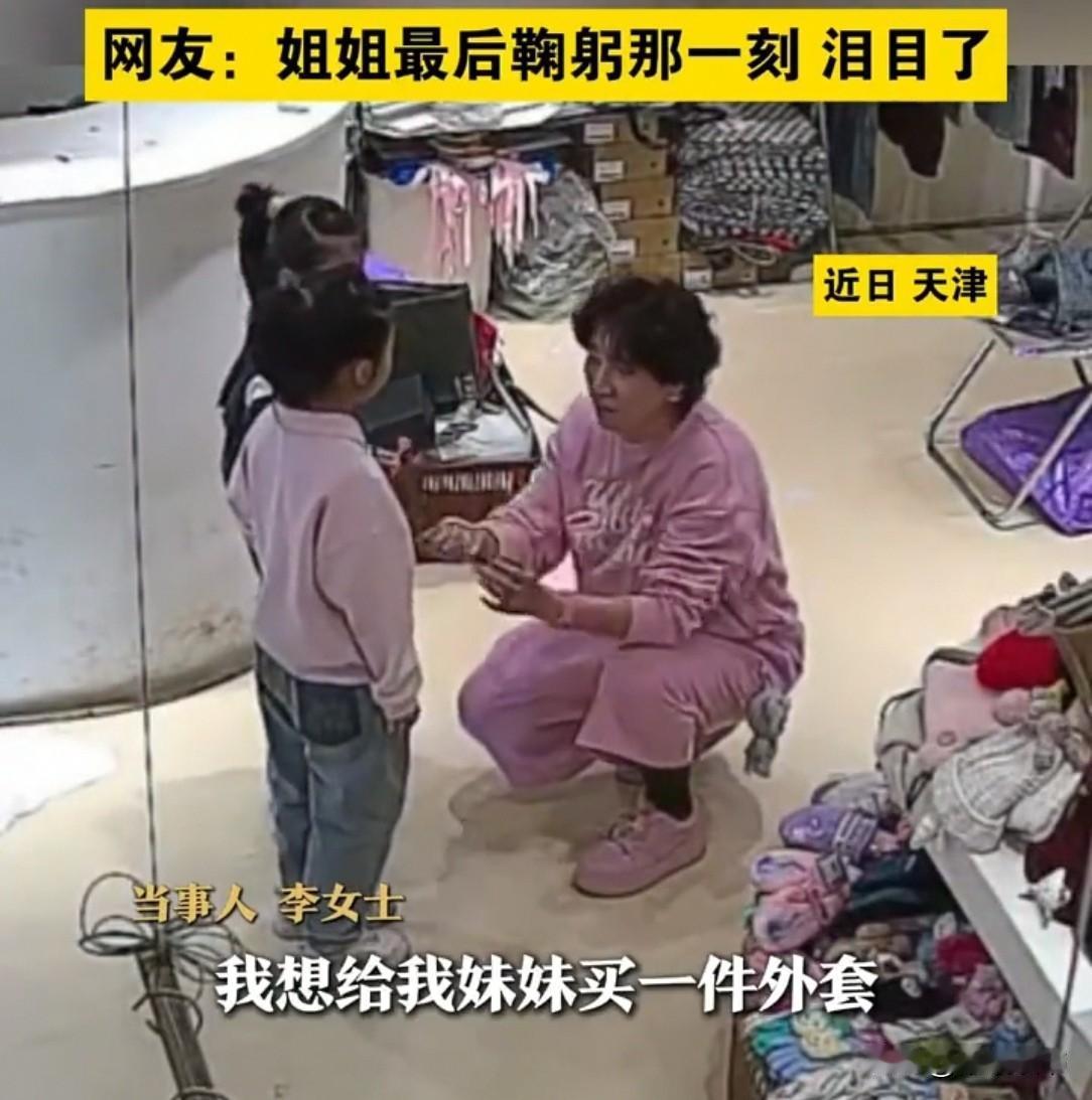 天津一童装店,进来俩小女孩。大的攥着一把零钱,说:“阿姨,买件外套,我有钱。”摊开手,只有20几块钱。这钱哪够买外套,老板娘问女孩:“你们爸妈呢?”女孩回后,老板娘眼圈瞬间红了,免费送了2件外套。 这天中午,天津一童装店的老板娘李女士正扒着几口饭,店门“吱呀”一声被推开,进来两个小小的身影。 她放下筷子抬头一看,是两个小姑娘,看起来五六岁的样子。 李女士赶紧起身问:“宝贝们,你们怎么自己进来了?是迷路了吗?” 大一点的女孩摇摇头,小手紧紧攥着什么,仰着小脸认真说:“阿姨,我来给妹妹买件外套,我有钱。” 说着,她慢慢摊开冻得发红的小手,里面是一把皱巴巴的零钱,有一块、五块的,凑一起也就二十几块钱。 李女士一看这钱,心里嘀咕:这哪儿够买外套啊,进货价都不够。 她笑着问:“你们爸妈呢?怎么让你们自己来买衣服呀?” 女孩的声音低了些:“爸妈今年过年不回家,天冷了,我想给妹妹买件外套过年穿。” 这话一出口,李女士才仔细打量姐妹俩:俩人都只穿了件单衣,连件薄外套都没穿,寒风顺着门缝往里灌,她们的小脸蛋冻得红扑扑的,小手更是凉得像冰疙瘩。 李女士心里一下就揪紧了,又酸又难受。 她没再多说,赶紧从货架上挑了件厚实的外套,蹲下来给小妹妹穿上,拉了拉领口帮她裹严实。 大女孩见状,赶紧把手里的零钱往李女士手里塞,拉着妹妹就要走。 “哎,等等!”李女士连忙喊住她们,又拿了件合身的外套给姐姐穿上,还翻出两双毛茸茸的手套,分别套在姐妹俩冻红的小手上。 大女孩愣了,连忙说:“阿姨,我只有这些钱,不够买两件的。” 李女士摆摆手,把零钱塞回她口袋里,笑着说:“不要钱,阿姨送给你们的!天这么冷,姐妹俩都得穿暖和点。” 临走时,大女孩拉着妹妹站定,恭恭敬敬地给李女士鞠了个躬,小声说:“谢谢阿姨!” 看着姐妹俩穿着新外套、戴着手套,蹦蹦跳跳走出店门的背影,李女士的眼眶一下就红了。 这孩子也太懂事了,别说普通外套,就算是店里最贵的鹅绒服,她也舍得送,就盼着这两个没爸妈陪的孩子,能暖暖和和过个年。 真是“人间自有真情在”。懂事的孩子,善良的店家,一件厚外套捂暖了两个寒冬。老板娘这一送,送的是衣裳,更是年关里最暖的光。 为这份朴素的善心点赞!