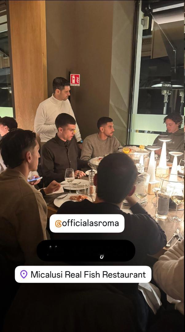 昨天罗马全队去一家海鲜餐厅聚餐了,主要是为了帮助几位新援融入
