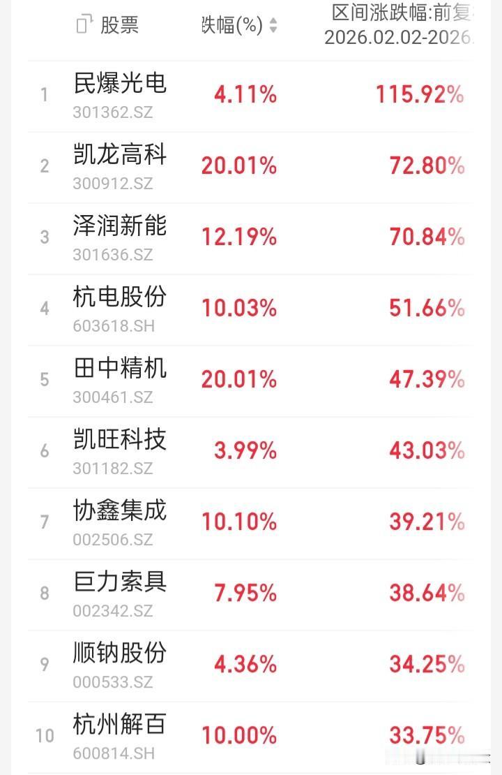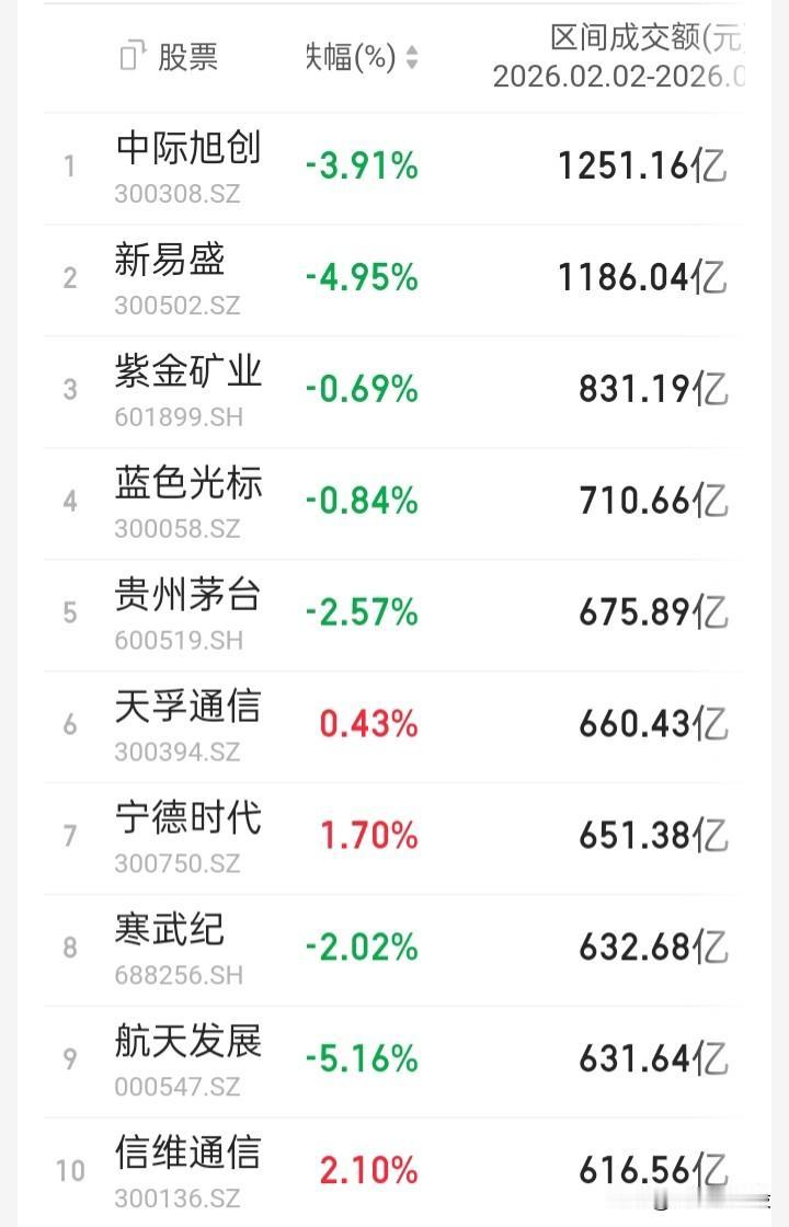 【本周A股02.02-02.06区间观察】“上证”周跌1.27%,“深证成指”周跌2.11%,“创业板指”周跌3.28%,“科创综指”周跌4.31%,“沪深300”周跌1.33%(四连阴) 总成交额前十、涨幅前十、跌幅前十↓