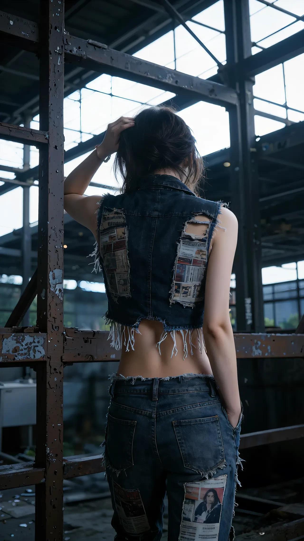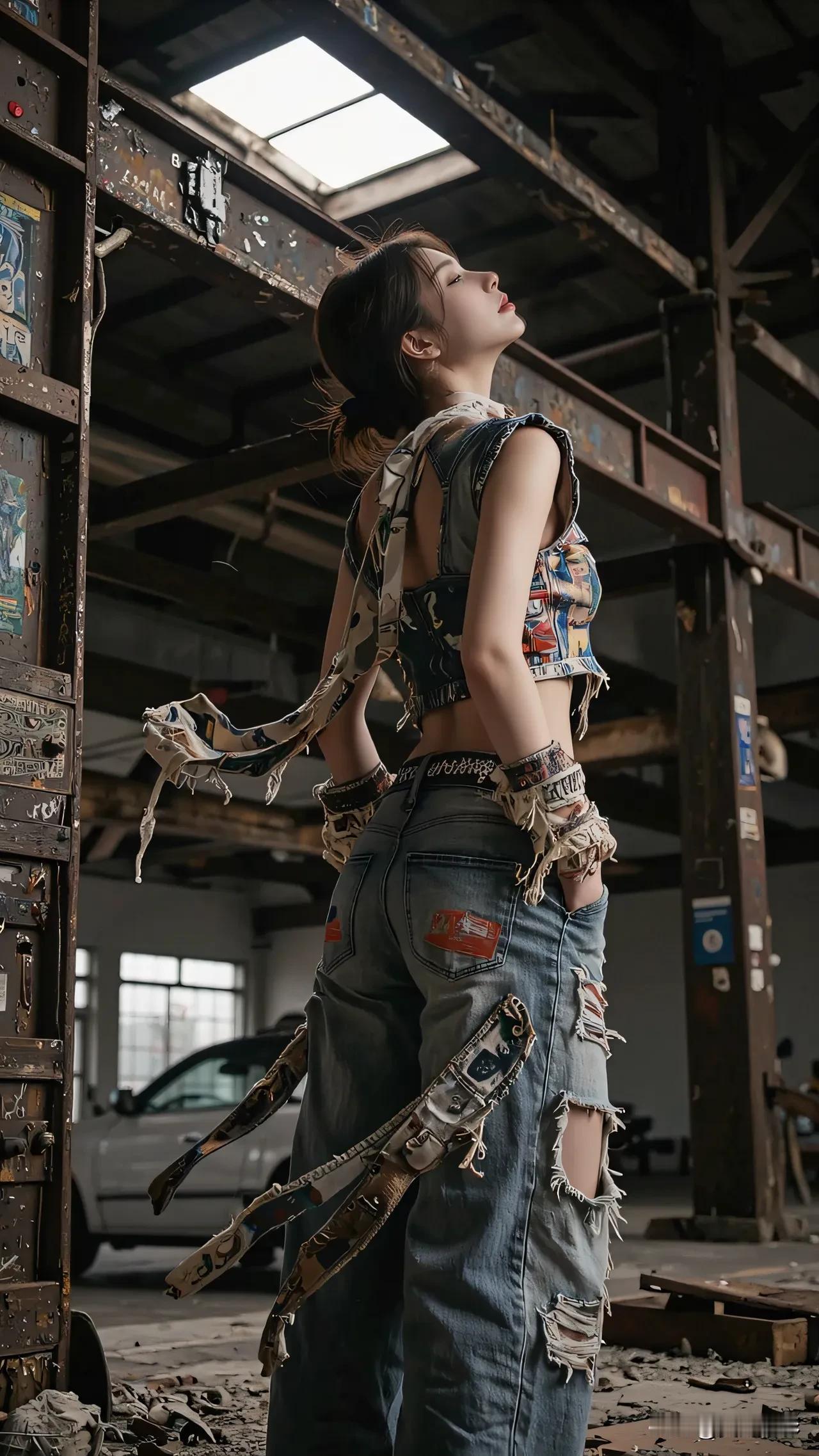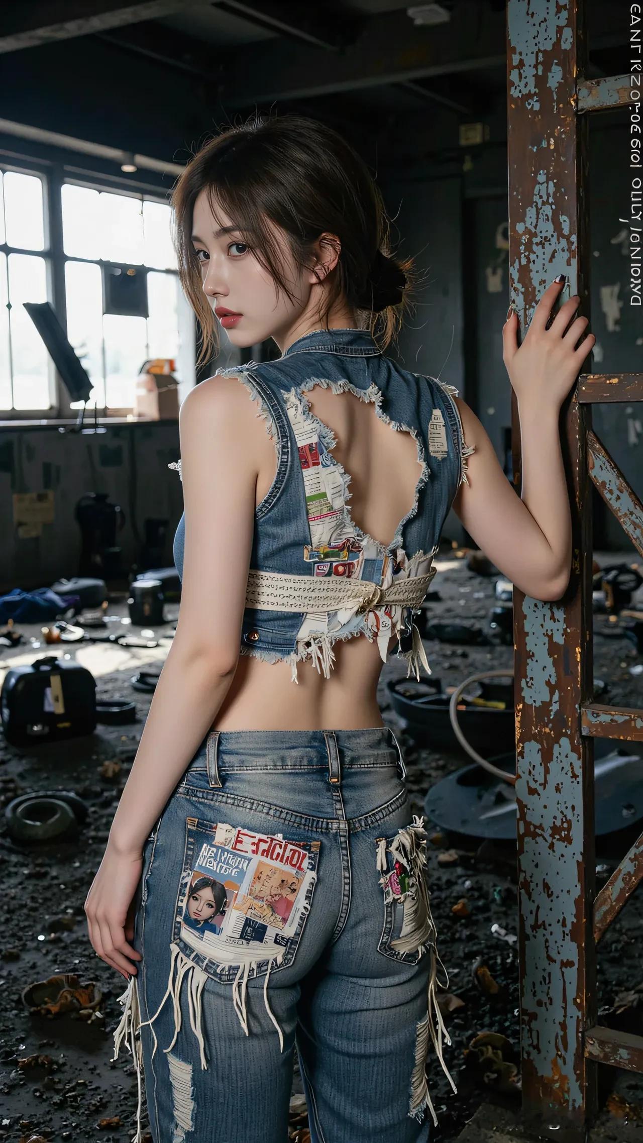 光之影&AI 工业风少女,复古牛仔与现代涂鸦的完美碰撞! 酷感牛仔女孩 时尚牛仔少女