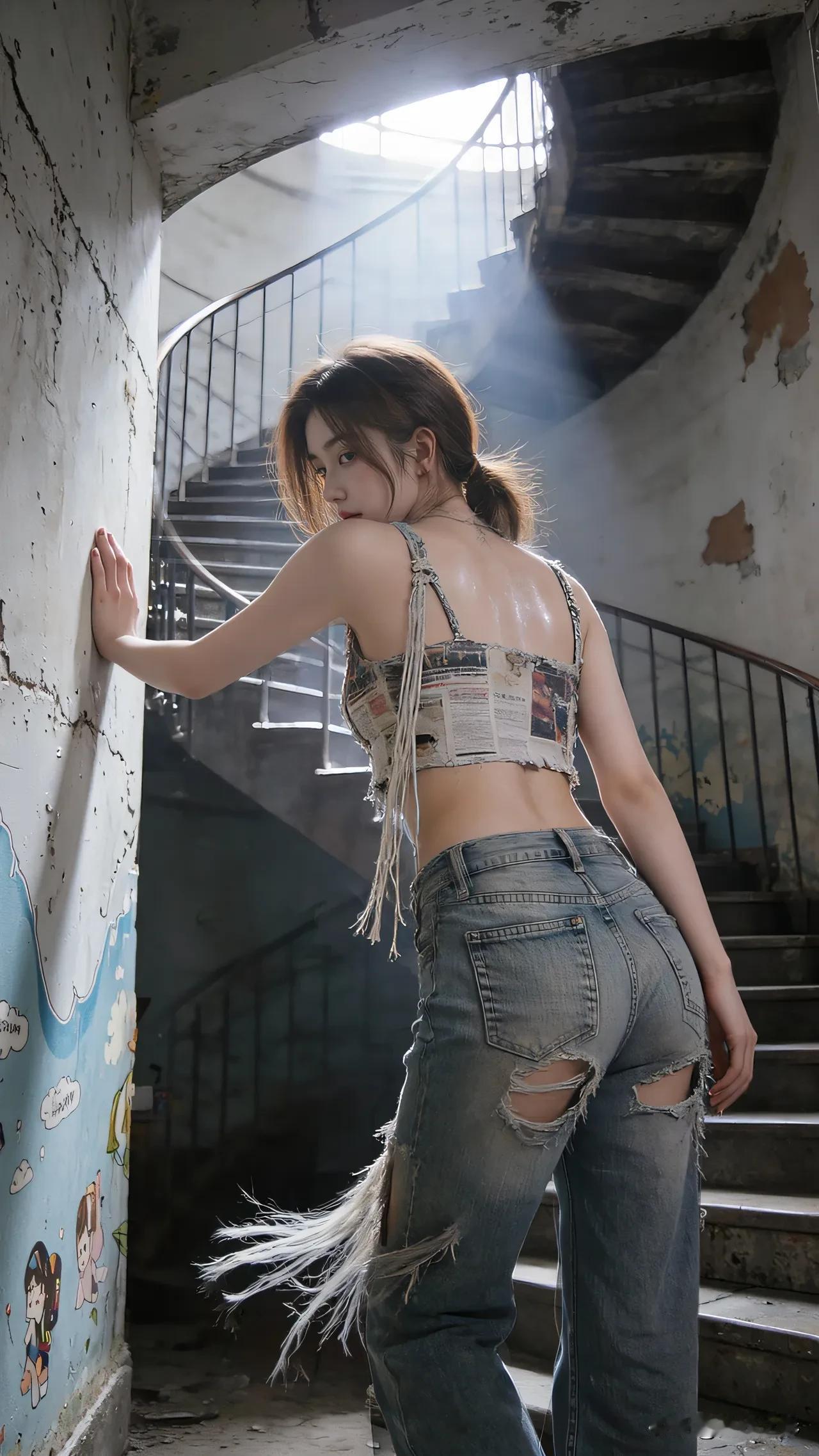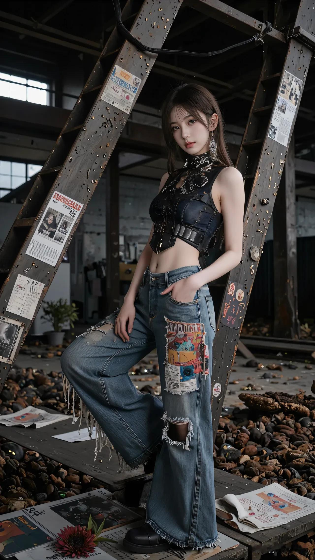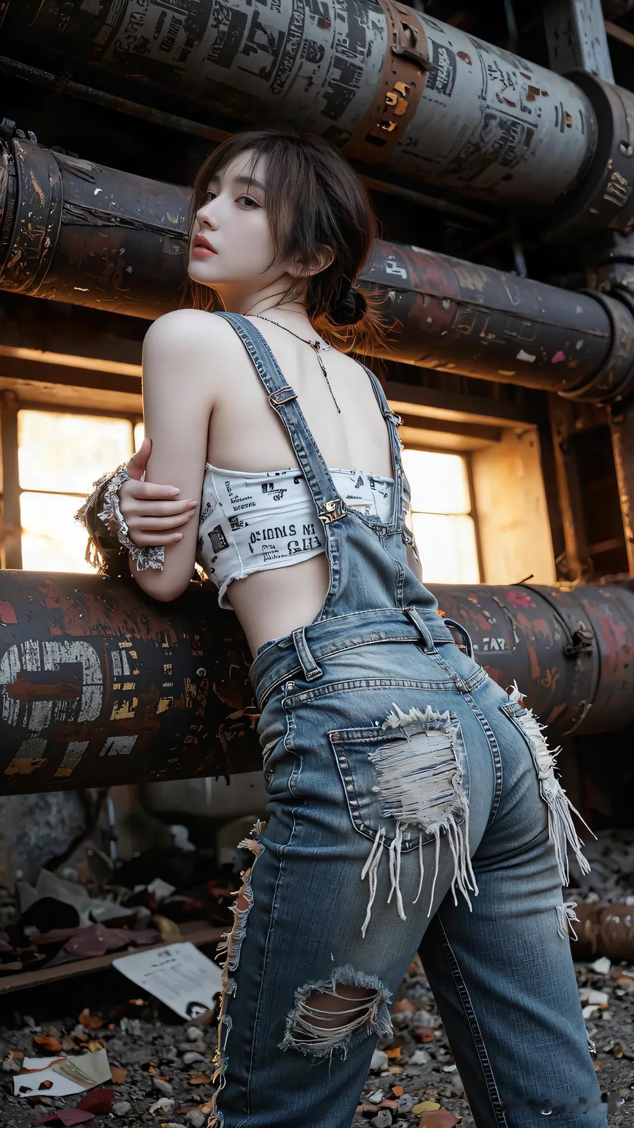 光之影&AI 工业风少女,复古牛仔与现代涂鸦的完美碰撞! 酷感牛仔女孩 时尚牛仔少女