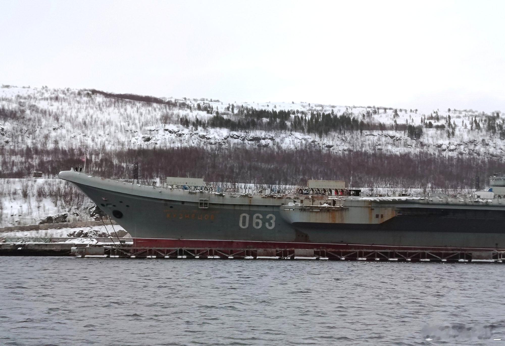 库舰前天拍到的最新影像,显然处于停工闲置状态。去年7月俄媒报道库舰已停工,可能要报废,正等待高层决定。半年多了仍未决定,估计是骑虎难下,废了心疼,继续改装又无力支撑。网页链接俄罗斯海军