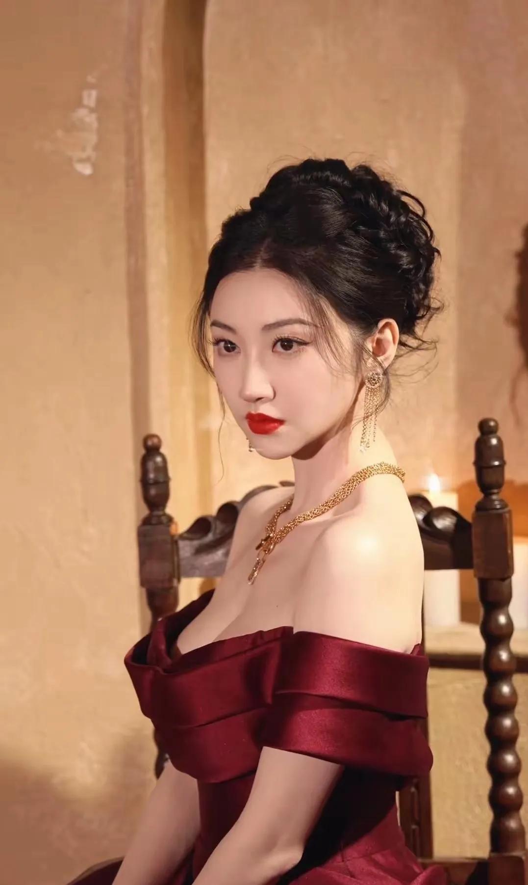 景甜这是什么复古名媛杀!💃 酒红色露肩长裙+高盘发,一整个从旧时光里走出来的优雅贵族! 暖光和烛影交织,姐姐的美真的鲨疯了,氛围感直接拉满! 景甜 微博之夜 复古名媛