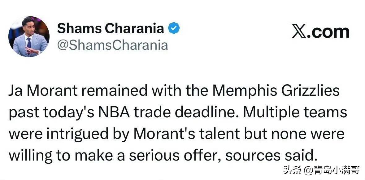 没人报价,莫兰特在交易市场遭遇冷暴力!!! 根据记者Shams消息透露,在交易走小贾伦-杰克逊后,灰熊并没有停下,他们在交易市场寻找是否有对莫兰特感兴趣的球队,但是竟然无一人给莫兰特进行报价。 莫兰特在交易市场遭遇了冷暴力,无人问津的结果也让灰熊意识到砸手里了,从当年联盟门面的竞争者到如今的过街老鼠,莫兰特的下场完全是拜自己所赐。 从进入联盟到现在,莫兰特并没有什么值得拿出手的成绩,除了最佳新秀和全明星再没有更好的荣誉了,在度过这些荣誉期之后莫兰特引以为傲的就是他的场外事件。 灰熊还能够在今夏休赛期送走莫兰特吗,毕竟他们要重建,必须交易莫兰特,但是还能收回选秀权吗?我的年度菱感记忆 莫兰特 灰熊 杰克逊灰熊 灰熊控卫莫兰特
