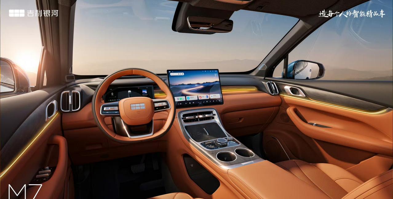 银河 M7 这个外形,确实跟问界想到一块儿去了! 其长宽高分别为 4770/1905/1685mm,轴距为 2785mm。新车搭载 1.2 平方米的超大全景天窗,车内大面积覆盖生态麂皮并点缀自然木纹饰板、水晶质感旋钮,配备 Flyme Sound 23 扬声器! 操控方面也是有国际大师调教,吉利系的驾驶操控一直都还不错! 另外 225km 纯电续航、加上大油箱以及自身 emi 技术的加持!预测就会有不错的销量,最终肯定会比银河 M9 低一个级别,起售价很有可能在 15 万左右!