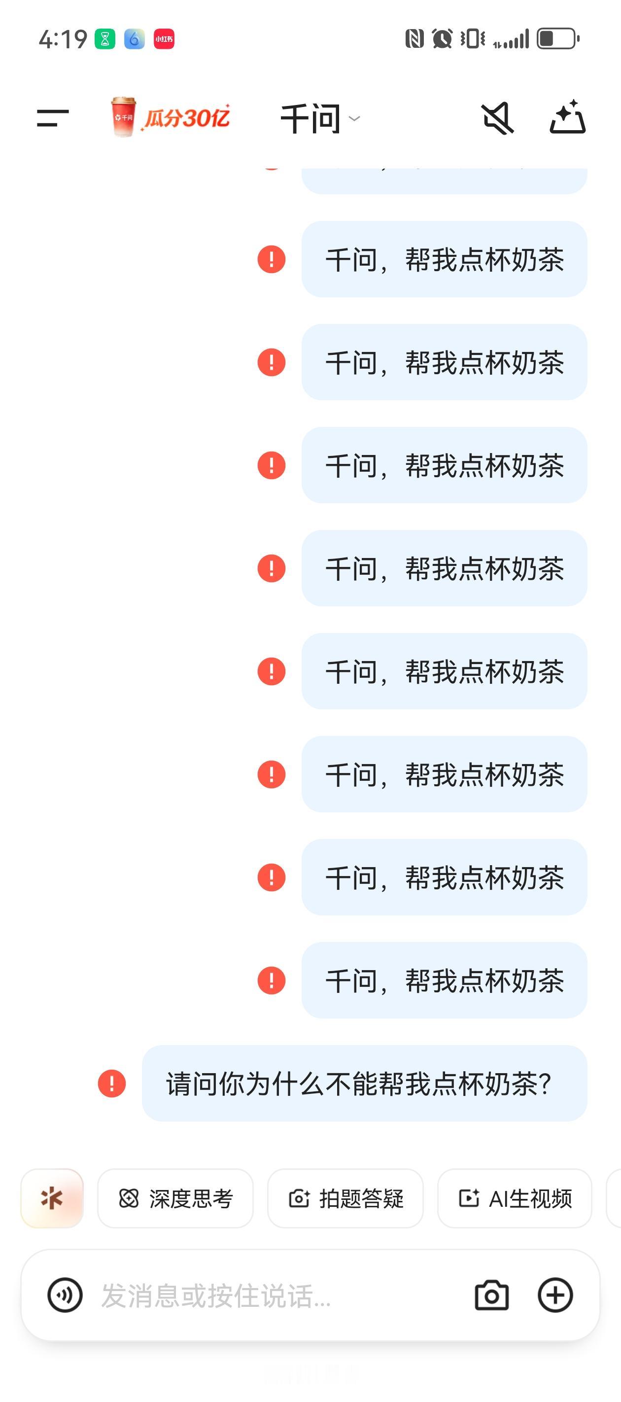 千问这是怎么了?红包这么快就发完了?