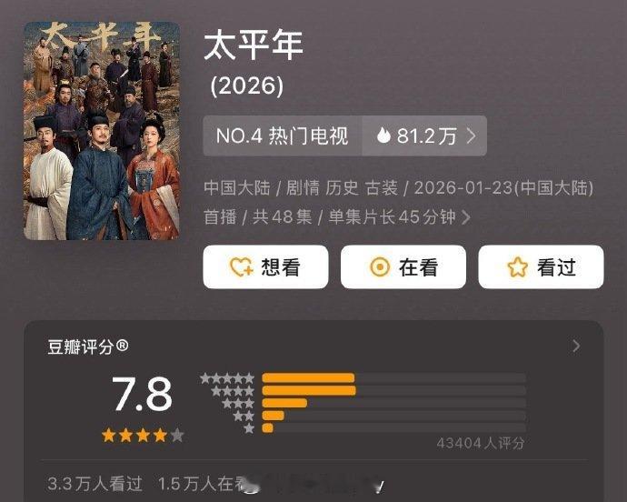 白宇、周雨彤《太平年》豆瓣开分7.8分,这个还没播完吧