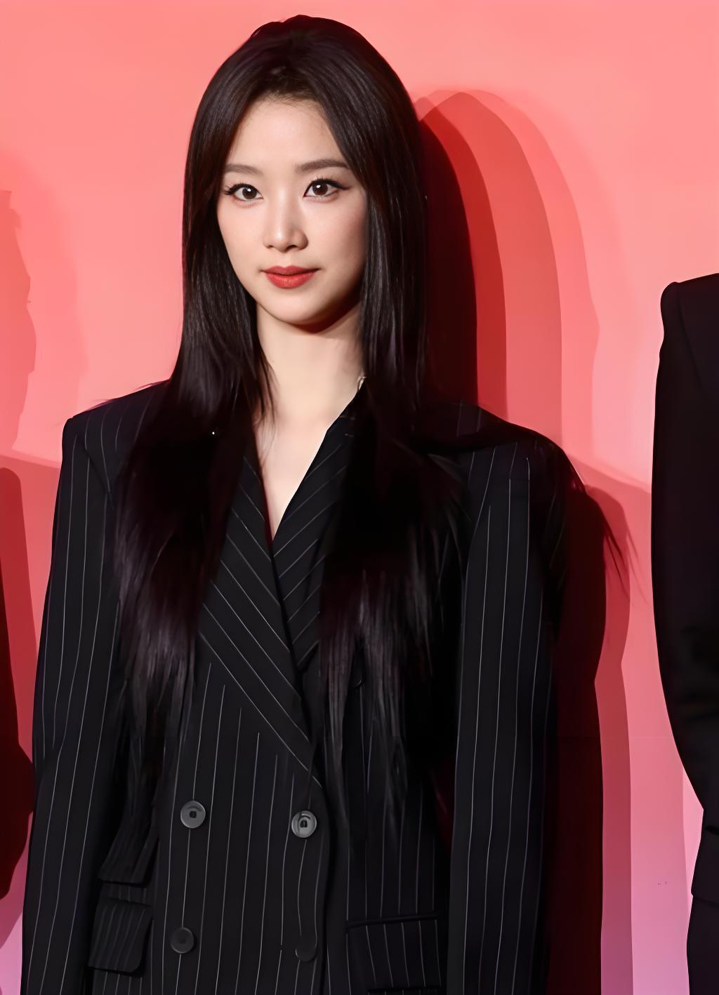 邝玲玲的黑色条纹西装简直太绝了!在网上看到她穿这西装的画面,瞬间就被吸引。她本就