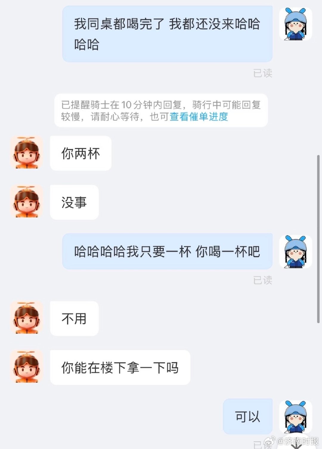 【#千问爆火骑手送奶茶全靠抢#】#你的骑手正在为你抢千问奶茶# 2月6日,千问在2026年春节推出“瓜分30亿”活动,其中第一波“20亿免单卡”允许用户通过简单指令领取25元无门槛券,实现0.01元喝奶茶/咖啡等饮品,引发全网薅羊毛热潮。不少网友在社交平台晒出自己和骑手的聊天记录,骑手上演抢奶茶大战,甚至有骑手抢多了直接送网友两杯,网友:今天喝什么取决于我的骑手给我抢到了什么。(综合网络)#千问 免费奶茶#