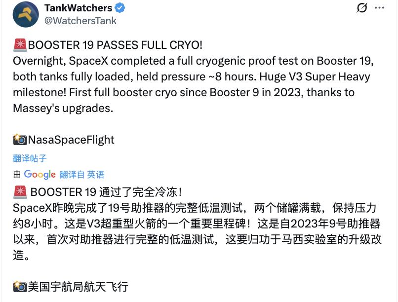 3毫米不锈钢已经成功蜕变成了工程美学上的冰箭(B19),目前该首个V3版超重型助推器似乎已通过了第一关罐体加压冷暴力测试,从外界得到的消息是箭体状态良好,这对于空X星舰团队和NASA来说无疑是个好消息,这样后续星舰F12的飞行测试闯关游戏计划节点至少可以按部就班了。