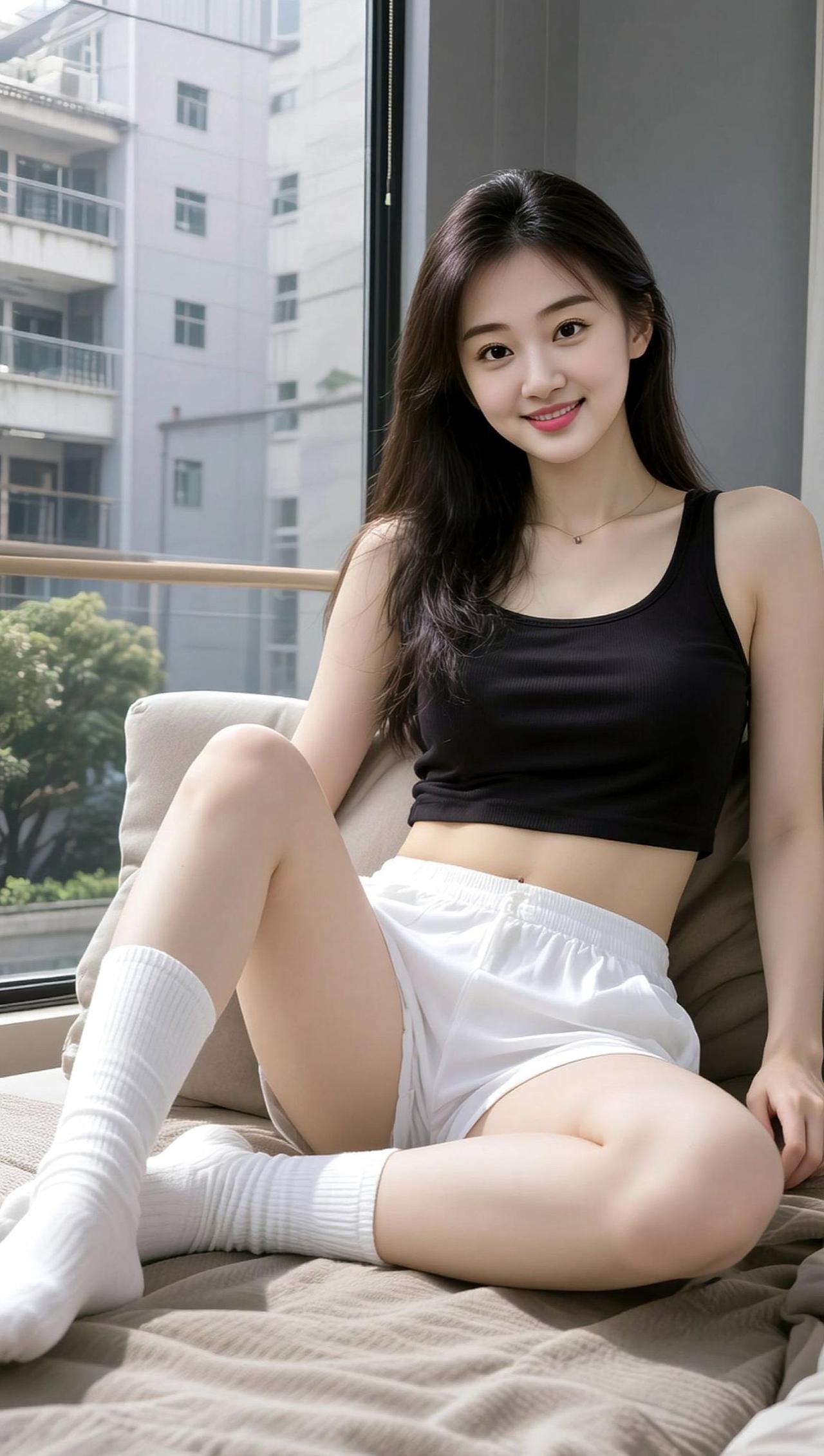 AI慵懒室内写真 抖音ai创作 紧身牛仔裤 健身穿搭 健身女孩穿搭