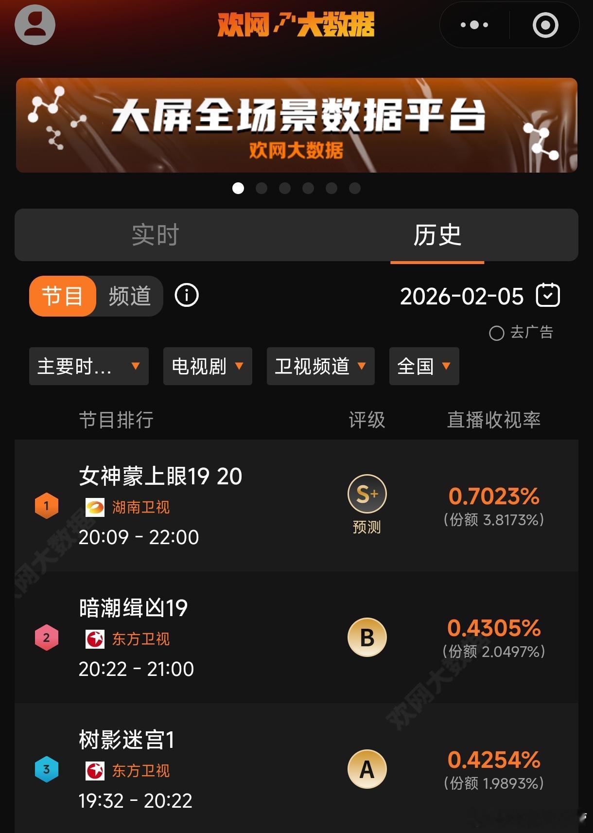 卫视收视率持续第一,网播数据也是持续第一
