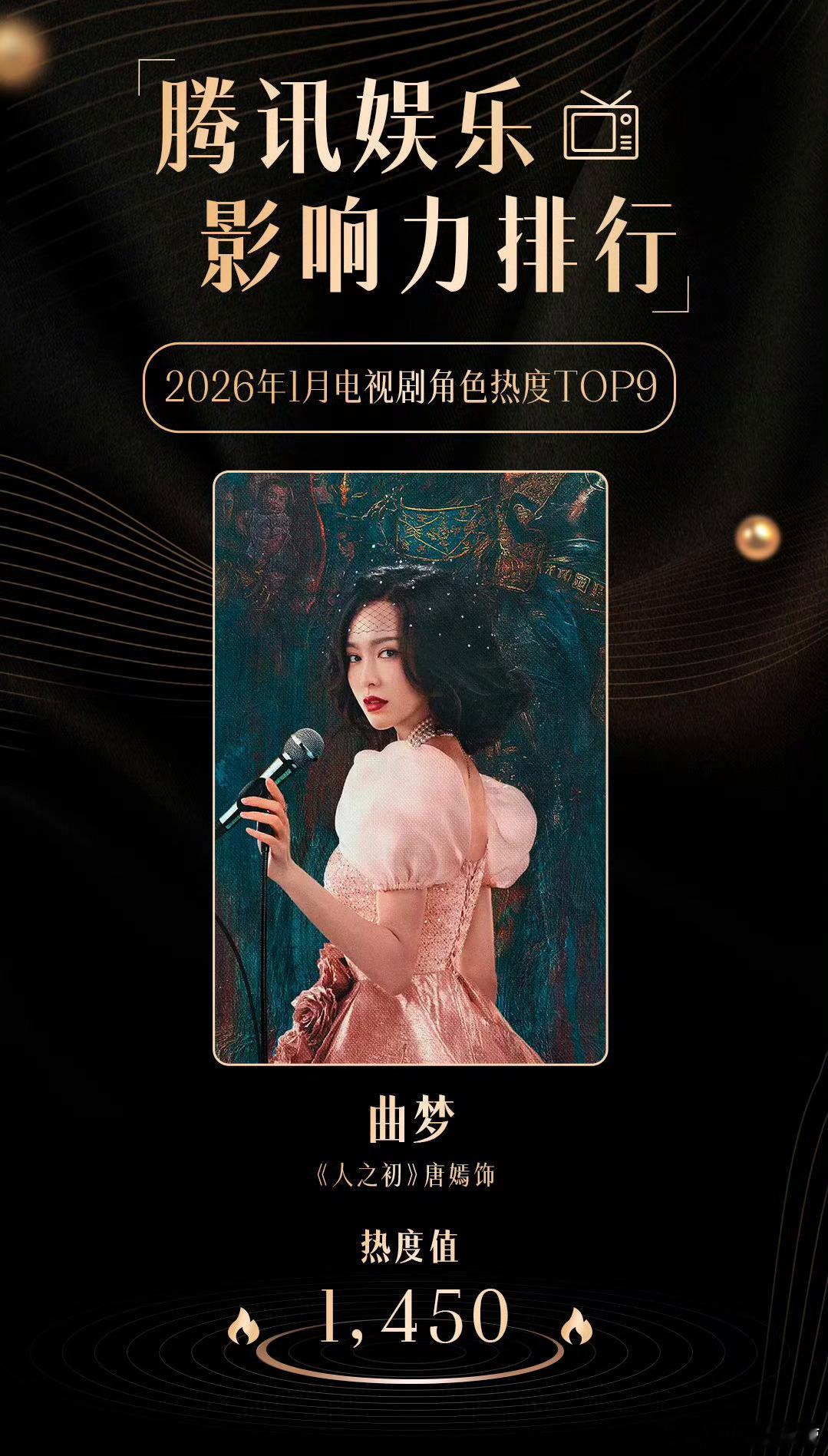 腾讯娱乐影响力2026一月电视剧角色热度榜——