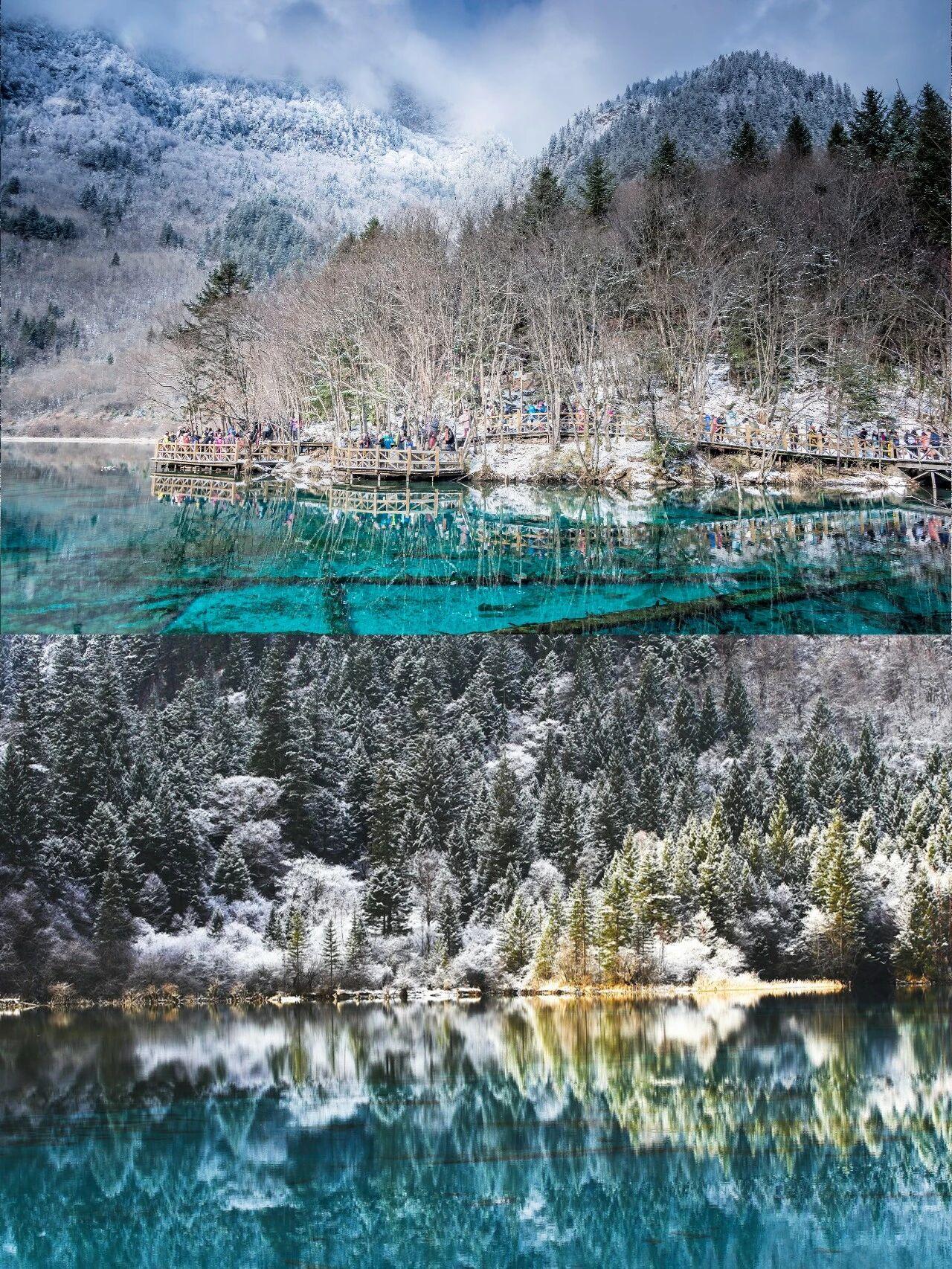 你一定要去看一次! ❄️九寨归来不看水 大雪一落,万物俱寂 只有海子的蓝与冰雪的白 交织在静谧的森林 成就了九寨沟唯美而纯粹的冰雪童话 🧊万物沉入一场澄澈的梦 冰雪雾凇,成为留白世界的一点符号 山林是朦胧而发光的秘境 每一汪水,都凝聚着晶莹剔透的蓝 却在阳光下折射出钻石般的碎光 山峦的轮廓、树木的剪影、冰与湖的光影 让“九寨归来不看水”这句赞美,成为“写实派” 📸必看指南: ✔九寨沟:水景之王,是冬日的秘境童话 ✔黄龙:冰雪覆盖钙华彩池,如瑶池秀美 ✔毕棚沟:雪山巍峨,湖泊如镜,森林静谧 ✔达古冰川:面积最大,年纪最轻的冰川 ✔羊茸哈德:最美藏寨,冬日更增加神秘唯美 ✔三星堆:20世纪人类最伟大的考古发现之一 ✔成都:慵懒而自在的美食之城