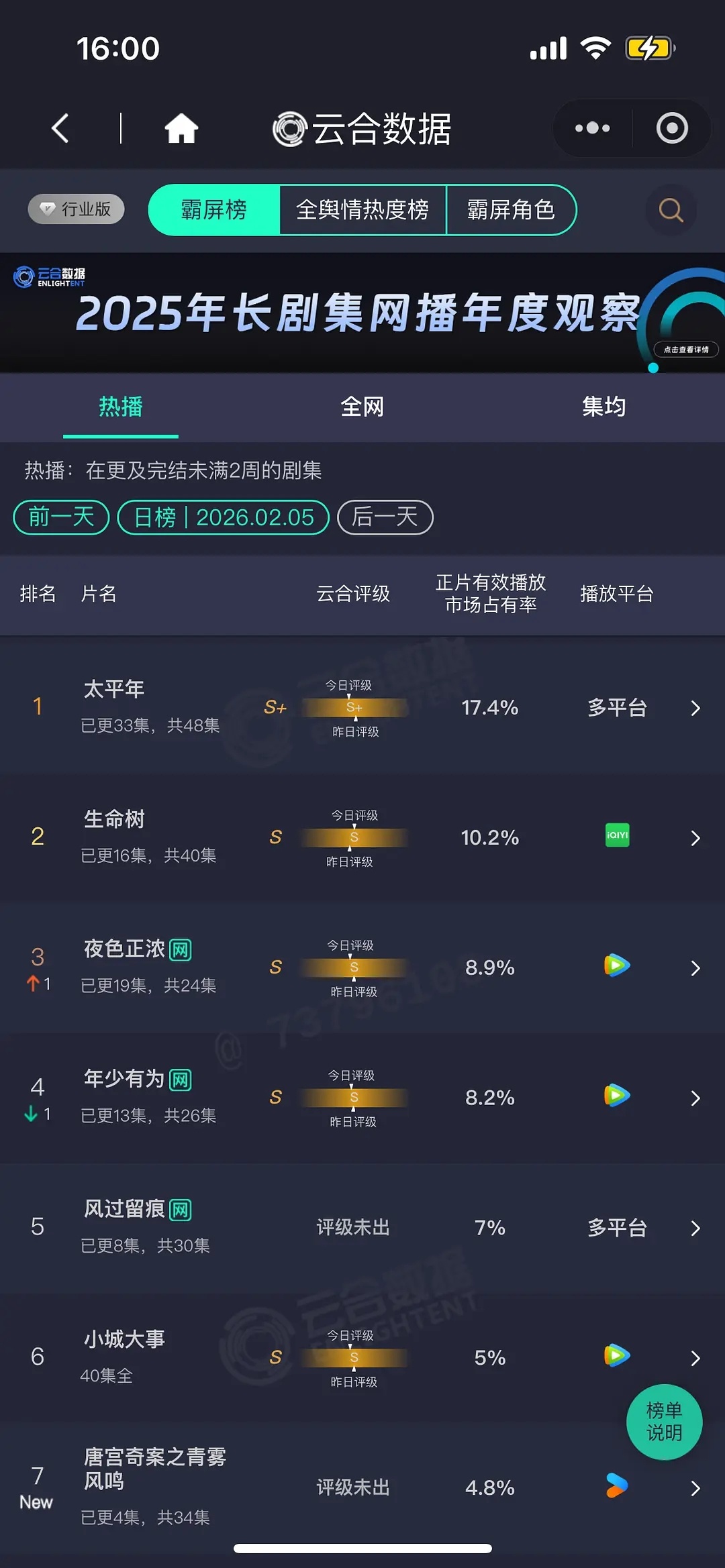 唐宫 首日灯塔878 云合4.8% 850+ 系数接近1酷云 655