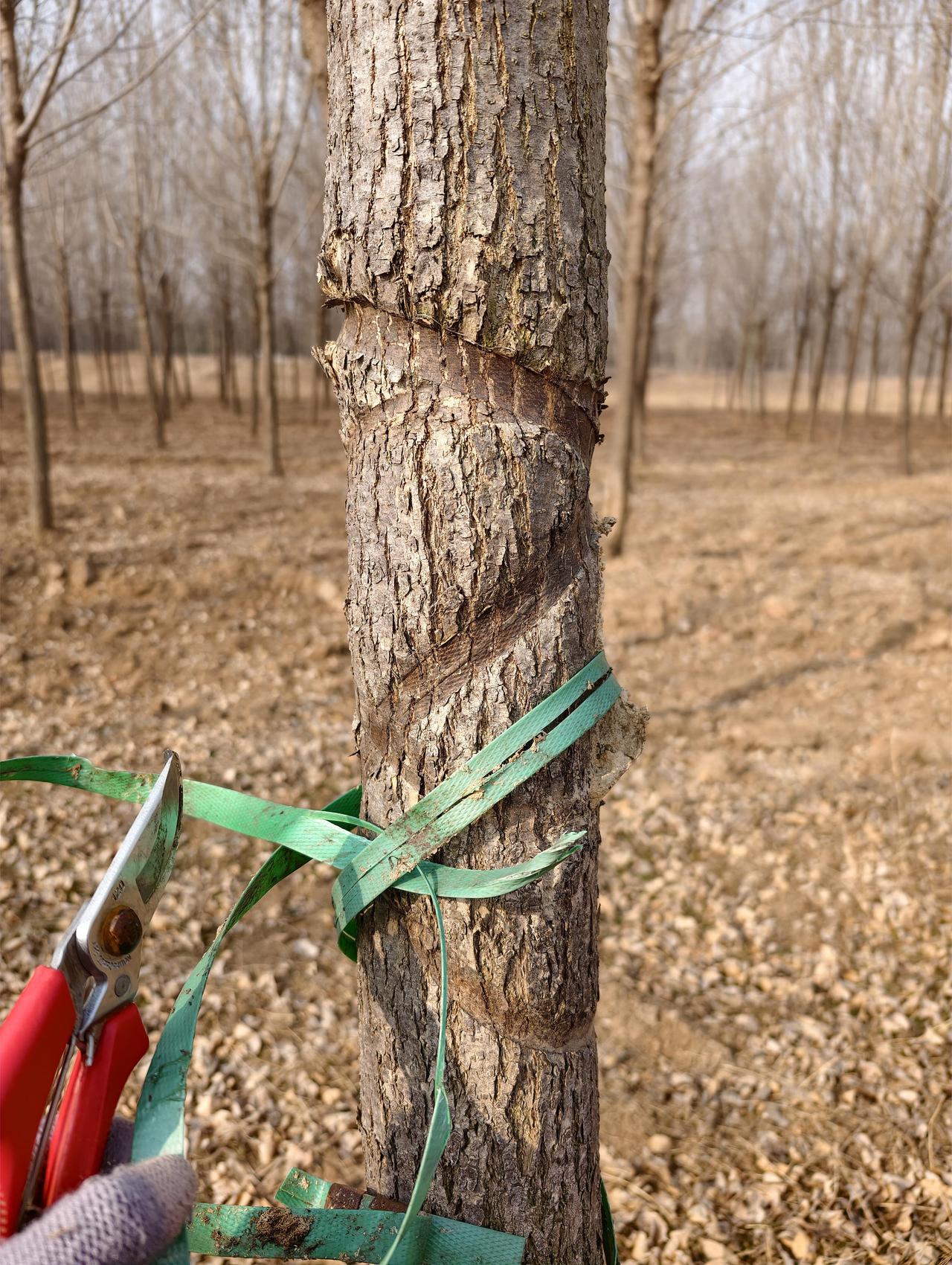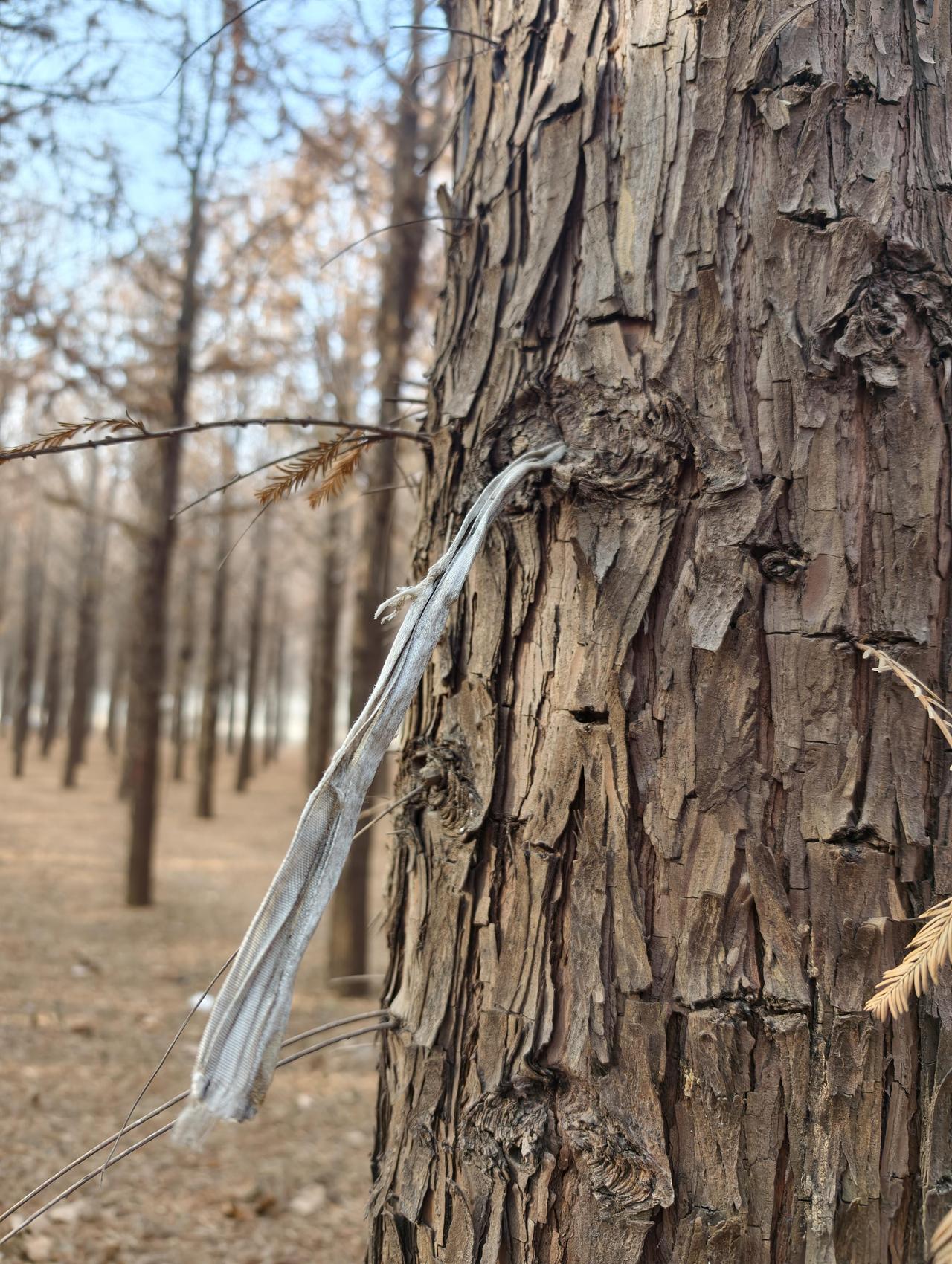 上次路过,撞见了这株白蜡树——绑带深深嵌进树皮,树干硬是在桎梏里拧着身,倔强地长。 今日特意带了修枝剪,指尖轻抵,慢慢剪开那圈束缚。 咔嚓一声,竟像扯断了心底某根无形的绳,松快得莫名。 转身走到另一侧的中山杉林,两株树静静立着,麻绳早与树身缠成一体,只余下一小截绳头,孤零零露在外面。 树不会开口诉说,可那一圈圈绕着的年轮,分明都刻着藏不住的疼。 世人总说“人非草木,孰能无情”,可草木何曾不是默默扛着我们的粗心疏忽,忍着我们的转身遗忘? 我知道,松开这道绑带,或许终究留不住这株被伤透了、早已遭虫蛀的白蜡树。 但至少在这一刻,它能迎着风,好好地、无拘无束地,呼吸一次。