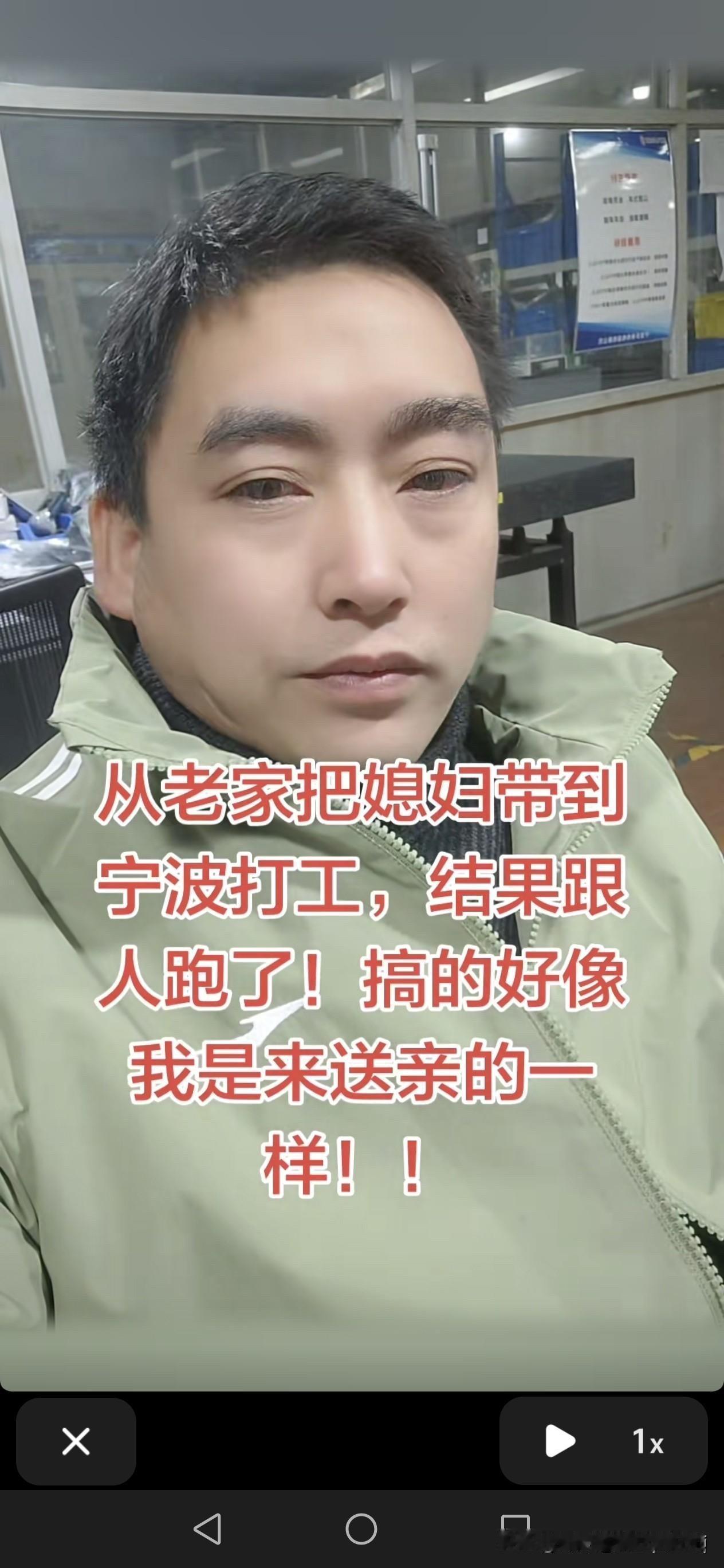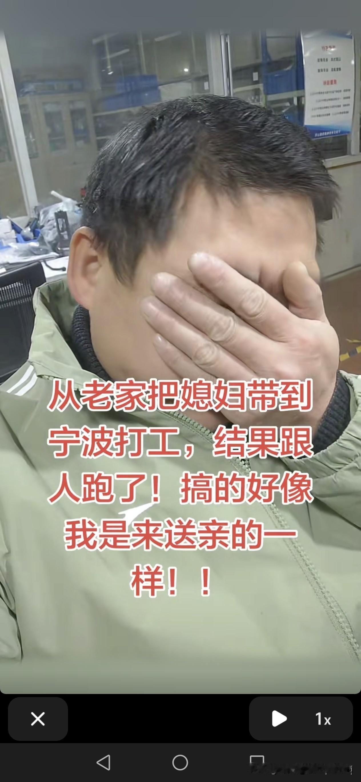 从老家把媳妇带到宁波打工,结果跟人跑了,搞得好像我是来送亲的一样…… 一个人在外工作太孤单了,本想回家把媳妇接来出来一起工作那样两个人就不孤单了,刚到这边排到一起上班还没几天,就给别人跑了,搞得好像是来送亲似的。 兄弟别哭,反过来想想就好了,别人的老婆跟了你这么多年。 帅哥,现在很难,给老婆放在家的吧偷人,带在一起打工,看到有钱的帅哥,又跟别人跑了,难搞呀! 放在家里被别人惦记,拴在身边还是和别人跑了,早知道就不结婚了[捂脸][捂脸][捂脸]