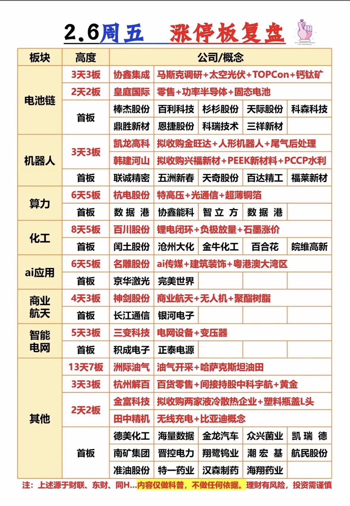 2月6日周五涨停板复盘 "涨停热点速览:协鑫集成领跑光伏赛道,皇庭国际发力半导体,杭电股份领衔算力板块,百川股份锂电受捧,洲际油气聚焦能源,投资需谨慎。"