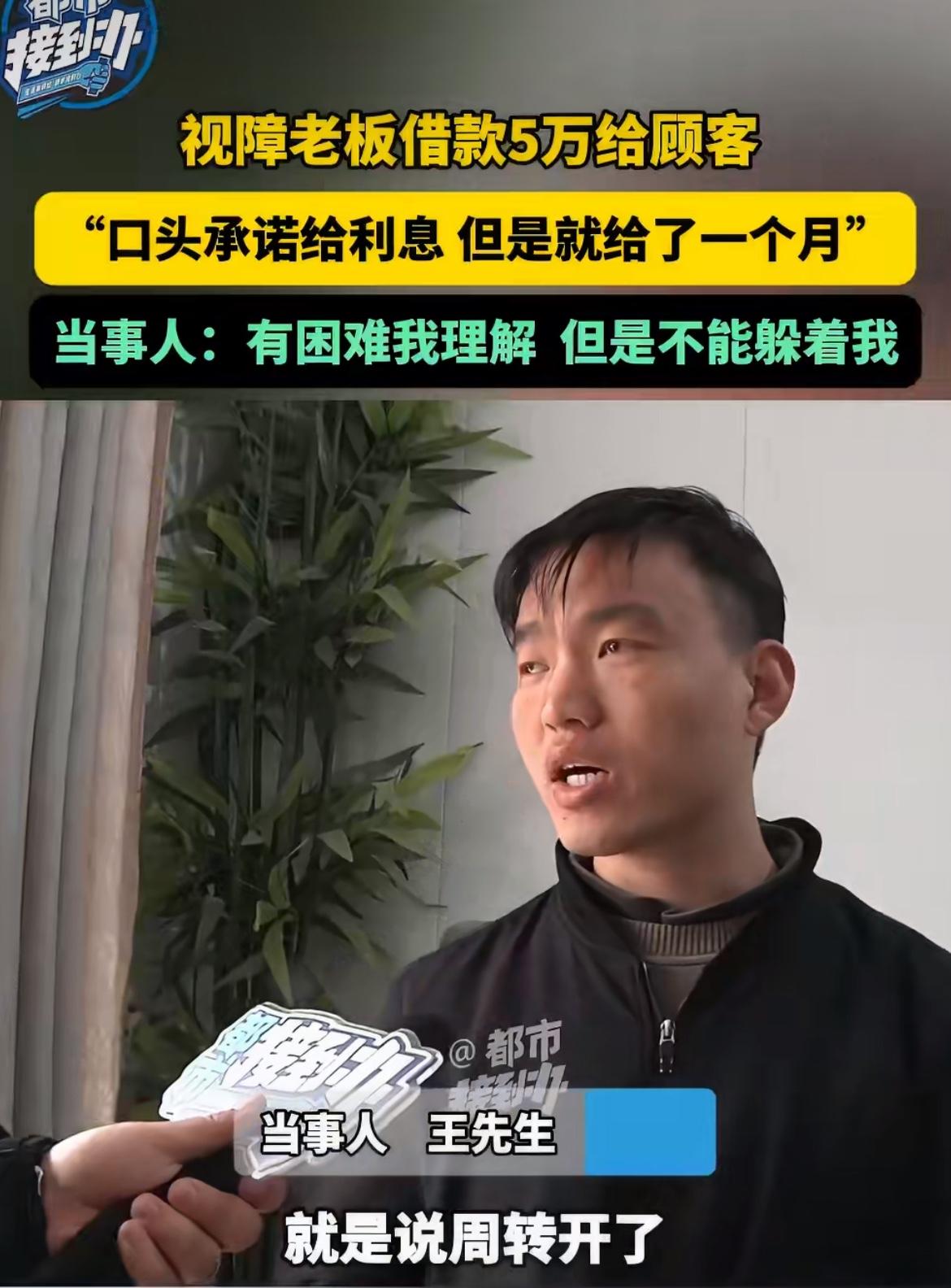 “心真黑,盲人的钱都骗!”盲人大哥好心借钱给老客户,对方送锦旗“妙手回春”后竟玩消失!5万本金拖了两年多,利息只给一个月!这锦旗到底是真心感谢还是另有“深意”? 河南的王先生视力残疾一级,在当地经营着一家按摩店。凭着过硬的手艺不仅治好了不少人的身体顽疾,还积累了一些老客户。可让他万万没想到的是,正是这份信任让他掉进了一个大坑。 2023年8月,一位经常来光顾的老客户找到王先生,说自己急需资金周转,想借50000元。王先生是个热心肠,想着大家都是熟人对方又是老主顾,就答应了。因为王先生几近全盲看不见字,签借条的时候,对方表现得特别“贴心”,特意把借条上的内容一字一句念了两遍给王先生听。双方约定这笔钱只借3个月,每个月付2500元利息。 本以为这是帮了朋友一个忙,结果却成了王先生噩梦的开始。借款后的第一个月,王先生确实收到了利息,但从那以后就再也没了下文。原本说好3个月就还本金,可这一拖就是两年多,别说本金,连利息的影子都没见到。王先生心里着实委屈,对于他这样一位残疾人来说,这50000元是他辛辛苦苦三四年才能攒下的血汗钱。 更让人哭笑不得的是,到了2024年12月这位老客户不仅没还钱,反而大张旗鼓地送来了一面锦旗,上面写着“妙手回春,技术精湛”。王先生收下锦旗时,还以为对方是想表达感激,很快就能把账清了。谁知这面锦旗成了最后的“告别礼”,送完锦旗后这位客户就彻底失联了,电话不接人也找不着。 为了维护自己的权益,王先生咨询了律师。经过查询发现对方名下确实有一家公司,但目前已经处于经营异常状态。律师在查看情况后提醒王先生,虽然借条真实存在,但双方约定的月利率5%其实已经属于高利贷范围,这部分过高的利息是不受法律保护的。现在最麻烦的是人找不到了,连调解的机会都没有。 记者尝试拨打这名客户的电话,结果始终无人接听。面对镜头王先生并没有表现出愤怒,而是平静地喊话这位老客户。他说如果有困难可以直说,大家可以商量,但不能这么躲着。这50000元对自己来说真的太不容易了,希望对方能良心发现,站出来把问题解决了。 这起事件引发了大家对特殊群体权益保护的讨论。盲人王先生本是用双手养活自己的劳动者,却因为信任和身体不便被钻了空子。这件事也提醒大家,钱财往来时一定要慎之又慎,法律武器才是保护自己最硬的底气。 如果你也心疼王先生的遭遇,或者对这种行为感到气愤,请动动手指点个赞并转发出去,让更多人看到这件事,也希望能通过舆论的力量帮王先生找回血汗钱。关注我,持续跟进此事的后续进展。 丰田品质B级纯电家轿9.38万 来源:都市接到办