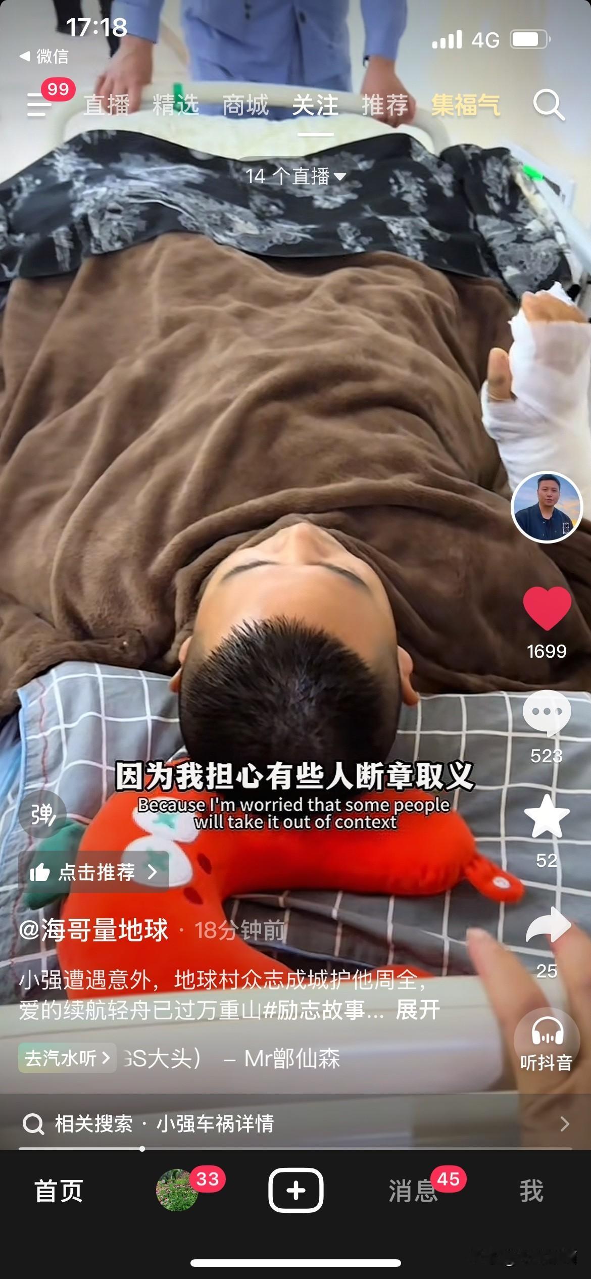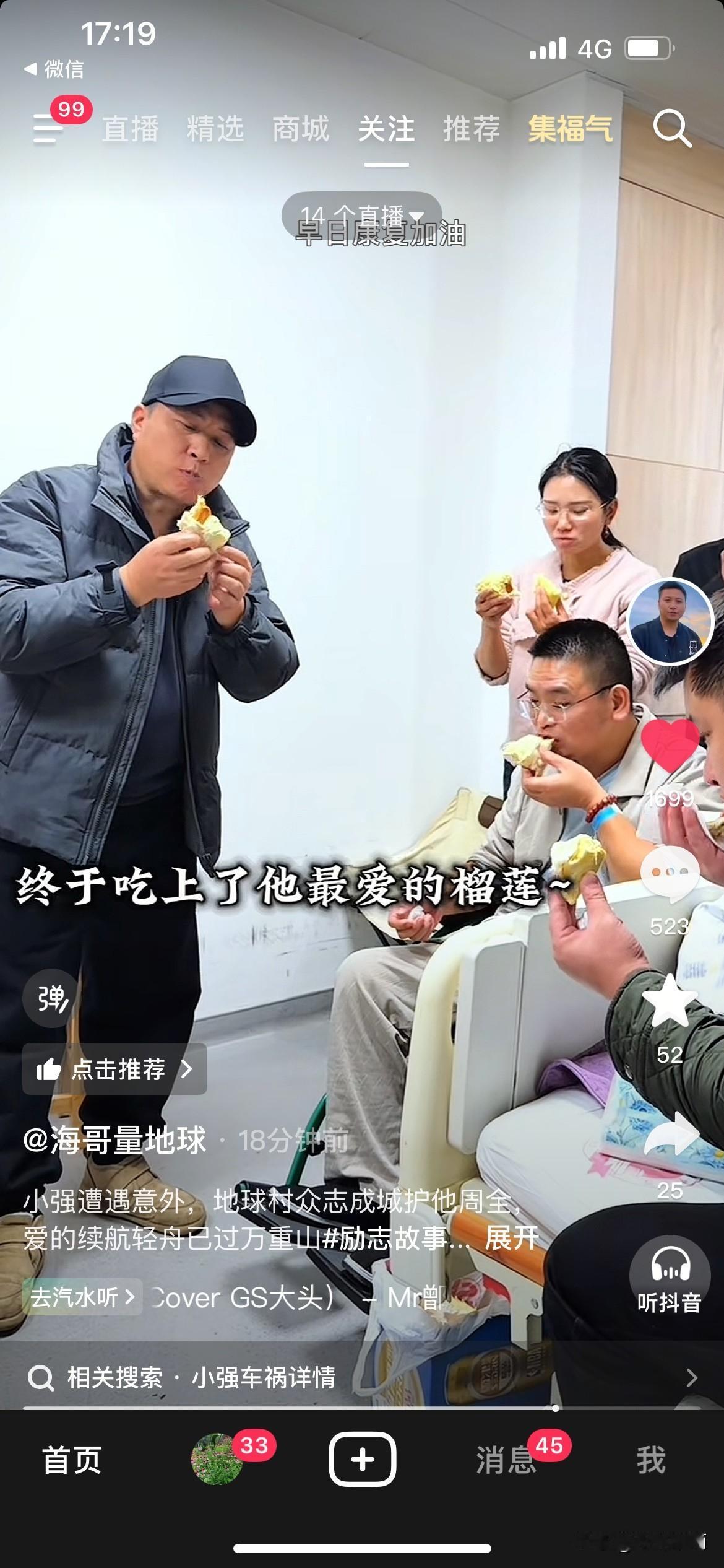 历经三个月的拼搏,地球村的兄弟姐妹们齐心协力,海哥摄影师浴火重生! 团结就是力量!在小强陷入绝境之时,海哥团队及时伸出援手,将小强从死神手中夺回! 有人陪伴照料,有人踊跃献血,有钱的出钱,有力的出力!这是一个极具凝聚力的团队! 海哥因担忧居心叵测之人断章取义,故而始终秘而不宣! 小强恢复态势良好,明日海哥便要接小强回家过年! 祝愿小强早日彻底康复! @海哥量地球(16-18号年货节)