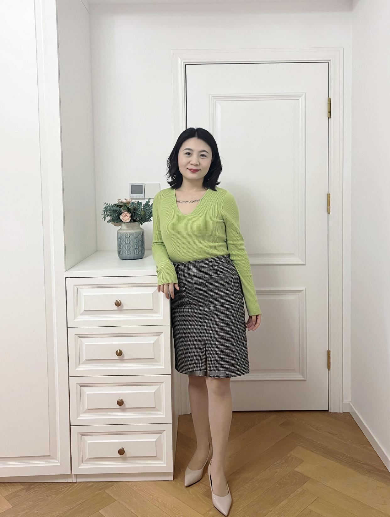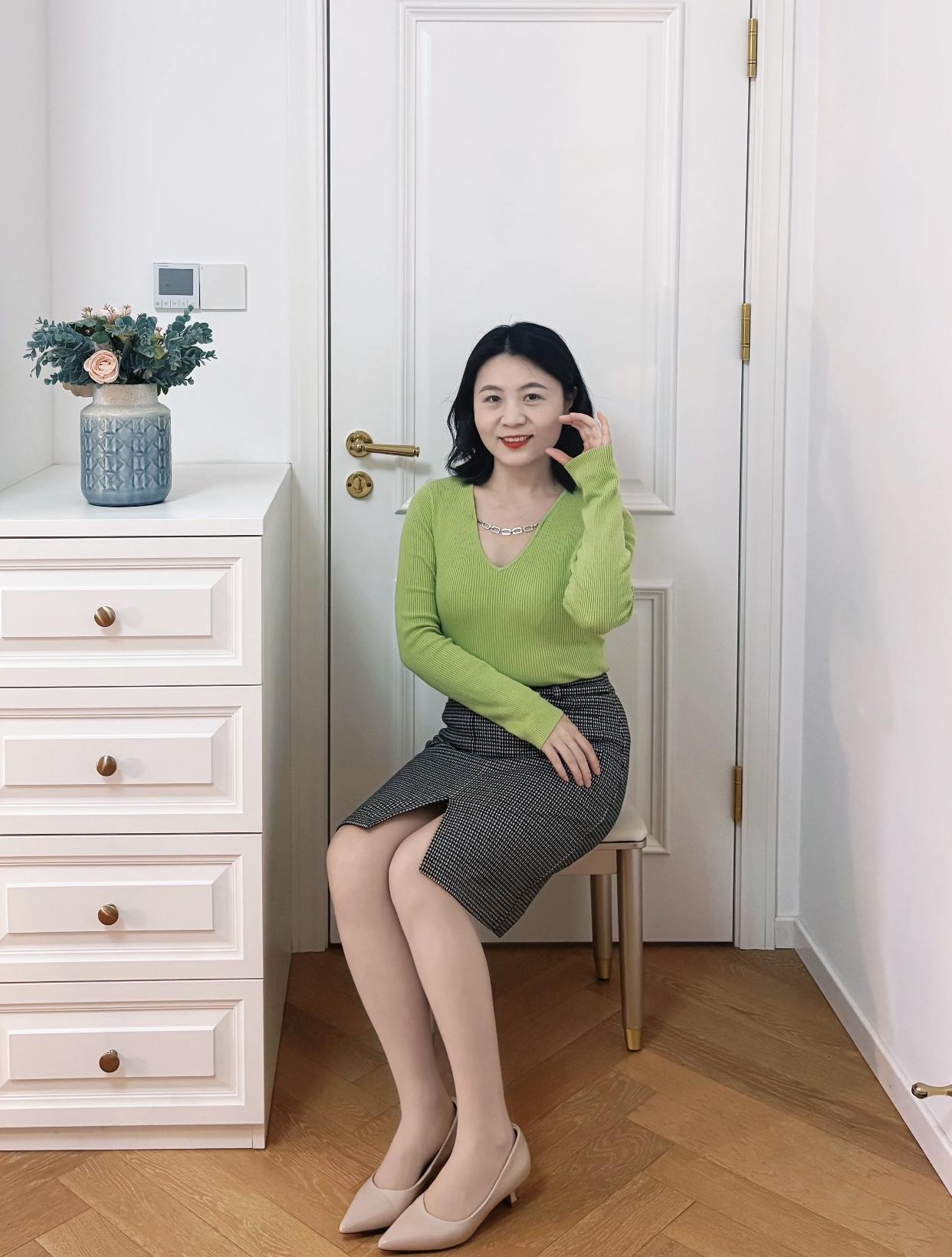 优雅职场穿搭,蓝色西装裙搭配高跟鞋,自信满满!