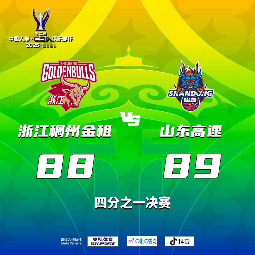 浙江稠州金租 88-89 山东高速CBA杯山东男篮战胜浙江男篮 浙江稠州金租:约克20分6篮板、约翰逊16分8篮板7助攻、兰道夫15分4助攻; 山东高速:鲍威尔21分4篮板、陈林坚19分6篮板、珀塞尔15分4篮板6助攻3抢断。
