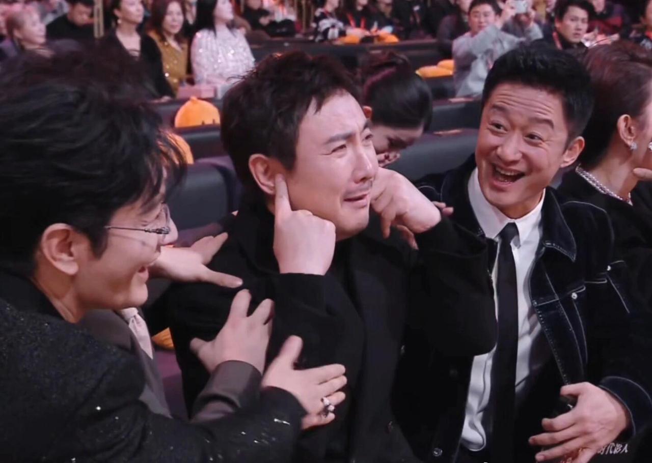 2025微博之夜, 最让人记住的不是奖杯, 而是沈腾在台下那场“丢奖”即兴秀。 主持人刚说获奖者名字是两个字,他瞬间捂住耳朵、身体前倾,整个人紧绷到不行。 黄渤在一旁搂着他肩膀安慰,吴京握拳打气,黄晓明学他东张西望,李乃文索性掏出手机全程录像,仿佛在看一场真人秀。 等到肖战拿下微博King的消息公布,沈腾的表情简直像拍电影。 先是瞪大眼,接着勉强挤出笑容,仰头一声哀嚎,最后猛拍大腿大笑,一连串动作被网友笑称演技能申遗。 轮到肖战发言,他马上站起来卖力鼓掌。杨幂领奖下台,他一个箭步冲过去搀扶。 黄渤全程搂着沈腾肩膀,跟着他的情绪起伏,吴京在旁边带头起哄,两人被调侃成票房三巨头联袂出演。 李冰冰、黄晓明也没闲着,一个捂嘴憋笑,一个比出夸张的淘汰手势,被观众笑称是内娱最贵群演天团。 作为2024年的微博King,沈腾去年领奖时紧张捂脸被说老来得King,今年又变成老来让King,把自己的拿奖故事玩成了幽默闭环。 这场面把颁奖礼变成了明星们展示真性情的大舞台,沈腾用他的方式告诉我们:输赢不是唯一,敢放下包袱、真诚相处,才最让人喜欢。 沈腾 微博之夜 微博in之夜 沈腾综艺争议 定格微博之夜 沈腾身材 沈腾谐音梗