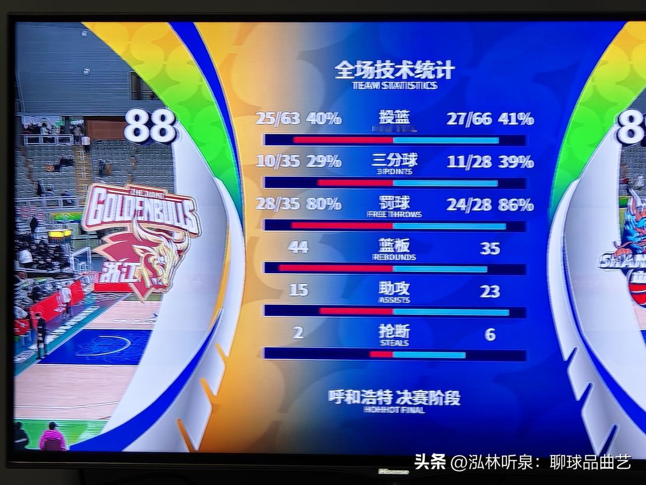 陈林坚关键三分锁定胜局,山东男篮1分险胜浙江晋级俱乐部杯四强! 比赛最后一秒,稠州队外援约克超远三分打板命中,但比分定格在88:89,山东男篮替补席瞬间沸腾。 今天下午,第二届CBA俱乐部杯首场四分之一决赛在呼和浩特上演激烈对决。山东高速男篮在首节落后9分的劣势下,上演精彩逆转,最终以89比88一分险胜浙江稠州男篮,率先晋级杯赛四强。 比赛开局浙江队率先进入状态,首节一度领先13分。山东队在第二节展开绝地反击,凭借陈林坚的精准投篮和全队防守,半场结束时成功反超2分。 第三节比赛,山东队内线核心陶汉林早早领到第4次犯规,被迫下场休息,这给球队内线防守带来巨大压力。双方比分紧咬,第三节结束时战成70平。 末节山东队打出7:0的小高潮确立领先优势,但浙江队顽强追分。比赛最后阶段,陶汉林五犯离场,浙江将分差缩小到1分。关键时刻,陈林坚的冷静三分帮助山东队稳住局面。 尽管浙江队约克在终场前命中超远打板三分,但为时已晚,稠州队无力回天。 陈林坚无疑是本场比赛最耀眼的明星,他贡献19分6篮板,并在比赛最后54秒命中关键三分球,为山东队锁定胜局。外援鲍威尔砍下全队最高的21分,珀赛尔也有15分进账。 浙江队方面,约克得到20分6篮板,约翰逊贡献16分8篮板7助攻的全面数据。 山东队将在半决赛中迎战上海队与广东队之间的胜者。 这场比赛双方都缺少了重要球员:山东队高诗岩和浙江队程帅澎均因参加国家队集训缺席,但两队依然联手奉献了一场精彩纷呈的对决。 本场胜利展示了山东男篮在逆境中的韧性和团队战斗力,为他们接下来的杯赛征程注入强大信心。