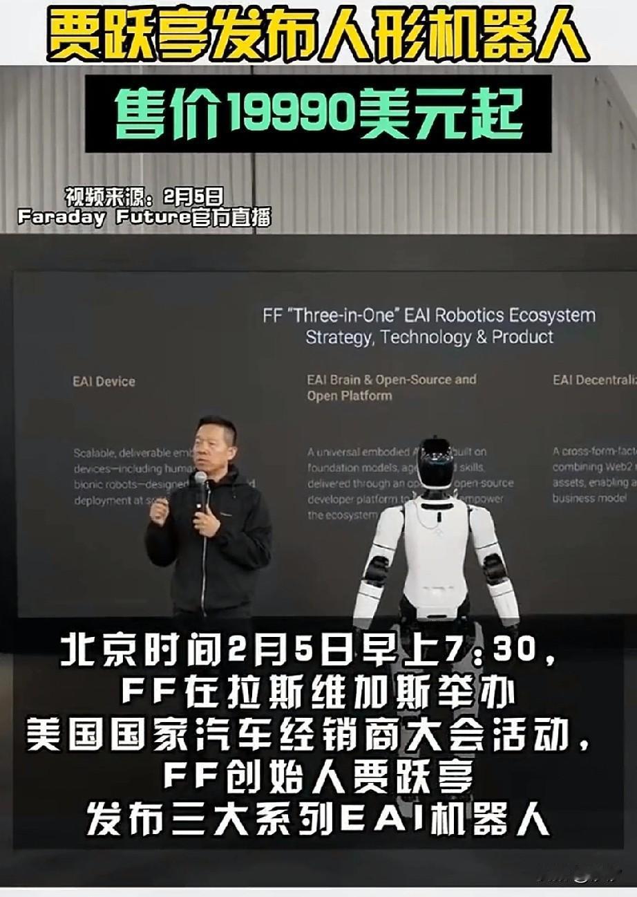 贾跃亭又出来作妖了,他在拉斯维加斯举办的美国汽车经销商大会活动上,展示了自己公司的三款机器人! 售价最低的19990美元,他在大会上又开始了自己的经典忽悠,还推出了34990美元的另一款机器! 被看出现场的观众也是非常的激动,还想做了很多美国的投资人,贾跃亭在美国也是混的风生水起, 既然公司这么成功,那么就赶紧把国内的债务给还了,要不然一直躲在美国也不是个事儿, 贾跃亭的三款机器人是真的这么先进吗?他和国内的机器人也很相似!但是他在这次大会上确实是出尽了风头! 大家觉得贾跃亭将来会回国吗? 贾跃亭 贾跃亭mpv 汽车行业机器人