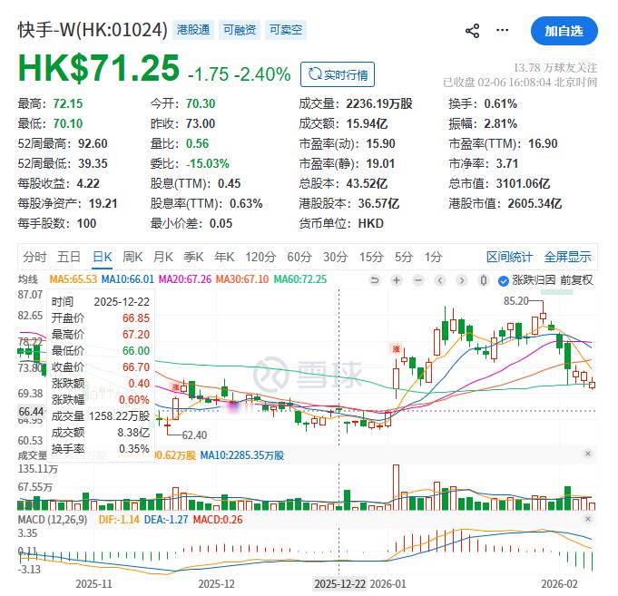 快手被罚1.191亿元人民币影响那么大,才罚这么点,股价相对2025年12月22日也没跌,快手的投资人长出一口气。