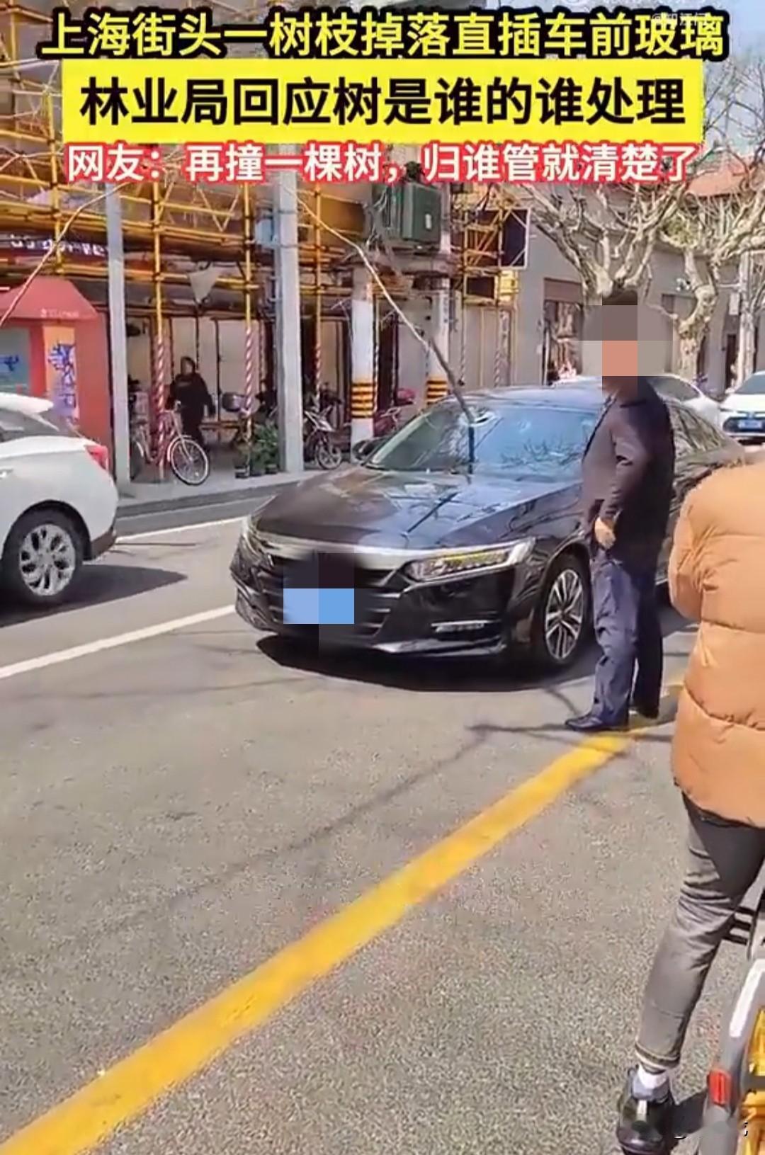 上海街头一棵腕口粗的树枝突然从树上折断,直直插入正在行驶的车辆挡风玻璃中,就插在挂档位置。 驾驶人肯定是惊出一身冷汗,下车时估计腿软了脚都迈不下来。 男子打电话询问林业部门,谁该为此承担责任,林业局回应:树是谁的,就去找谁。 这个确实不归林业局管,城市行道树,一般是由城建部门栽种,园林绿化局负责管理养护,绿化队工人具体负责一线行道树的日常巡查、修剪补植、浇水施肥和应急管理(倒伏、断枝)。 男子很是迷惘,出事大半天了,至今没有任何单位出来认领责任,他到底应该去找谁要车损和精神抚慰金。 其实,要找到这棵树的主人很简单,你开着车撞一下树,立马就有人出来找你麻烦,那时候你就知道树的主人是谁了。 素材来自于网络,如果存在侵权,请联系删除