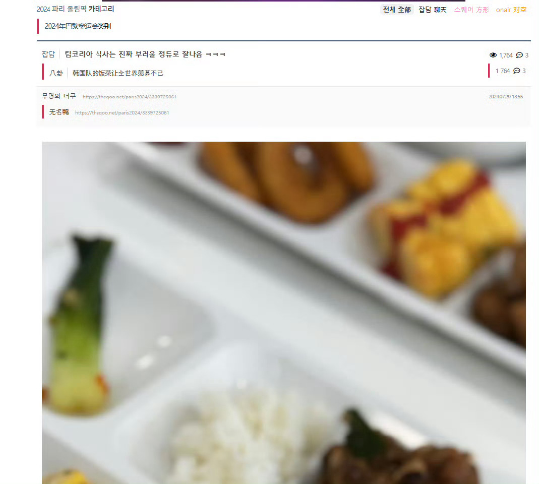 🔻韩国国家队在24年巴黎奥运会的时候也在法国建过膳食中心,为韩国运动员提供的,也是和这次冬奥会差不多的盒饭。🔻当时,🇰🇷韩国网友在theqoo发帖说:韩国队的饭菜让全世界羡慕不已(팀코리아 식사는 진짜 부러울 정듀로 잘나옴 ㅋㅋㅋ)🔻?🔻图3那个切成丁的是西瓜吗?西瓜也能切丁的吗?韩国运动员盒饭全民聊冬奥海外新鲜事
