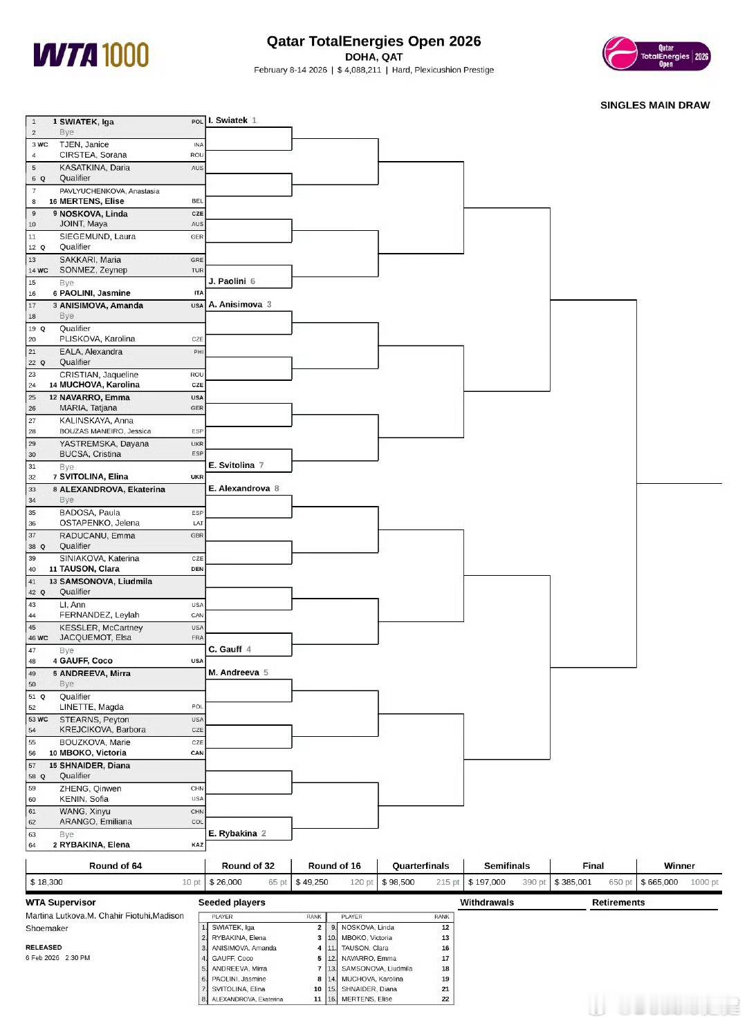 多哈赛:郑钦文VS肯宁,如晋级或将战施耐德,第三轮对位莱巴金娜。王欣瑜VS阿朗戈,如晋级将战莱巴金娜。巴多萨VS奥斯塔彭科卫冕冠军是?郑钦文复出首秀对阵肯宁郑钦文vs肯宁