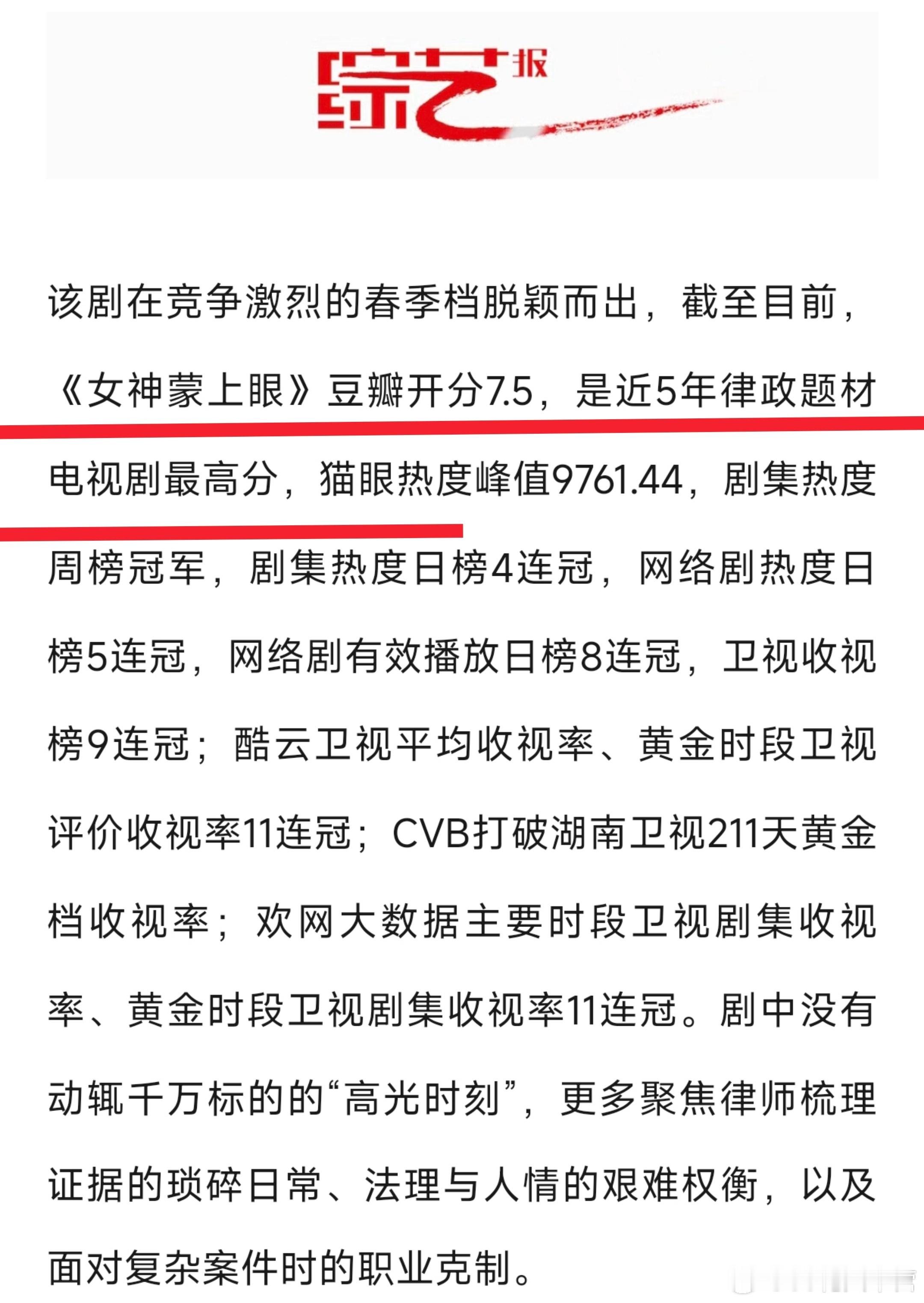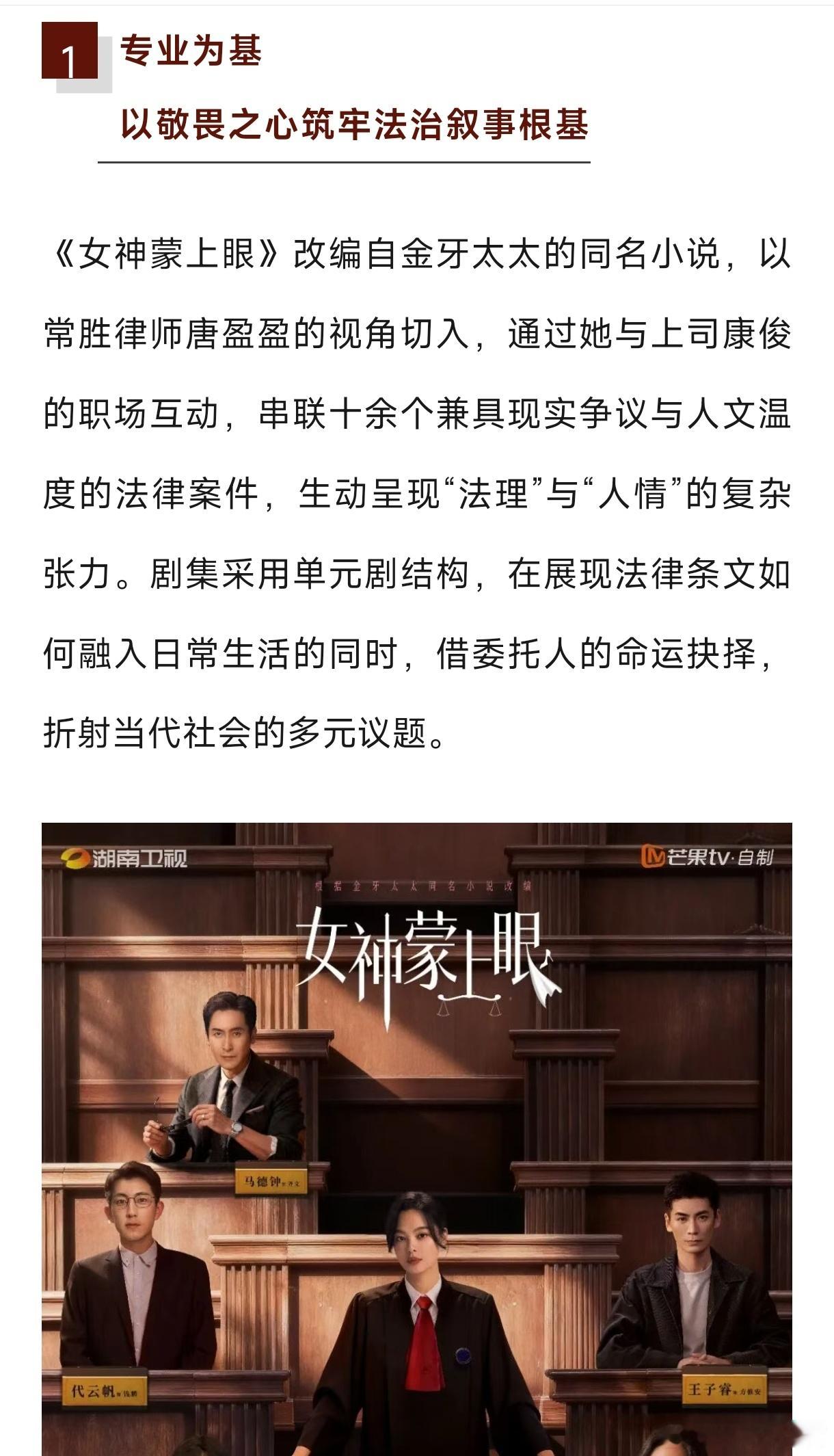 ——《女神蒙上眼》豆瓣开分7.5,是近5年律政题材电视剧最高分!主流媒体也来认可了!