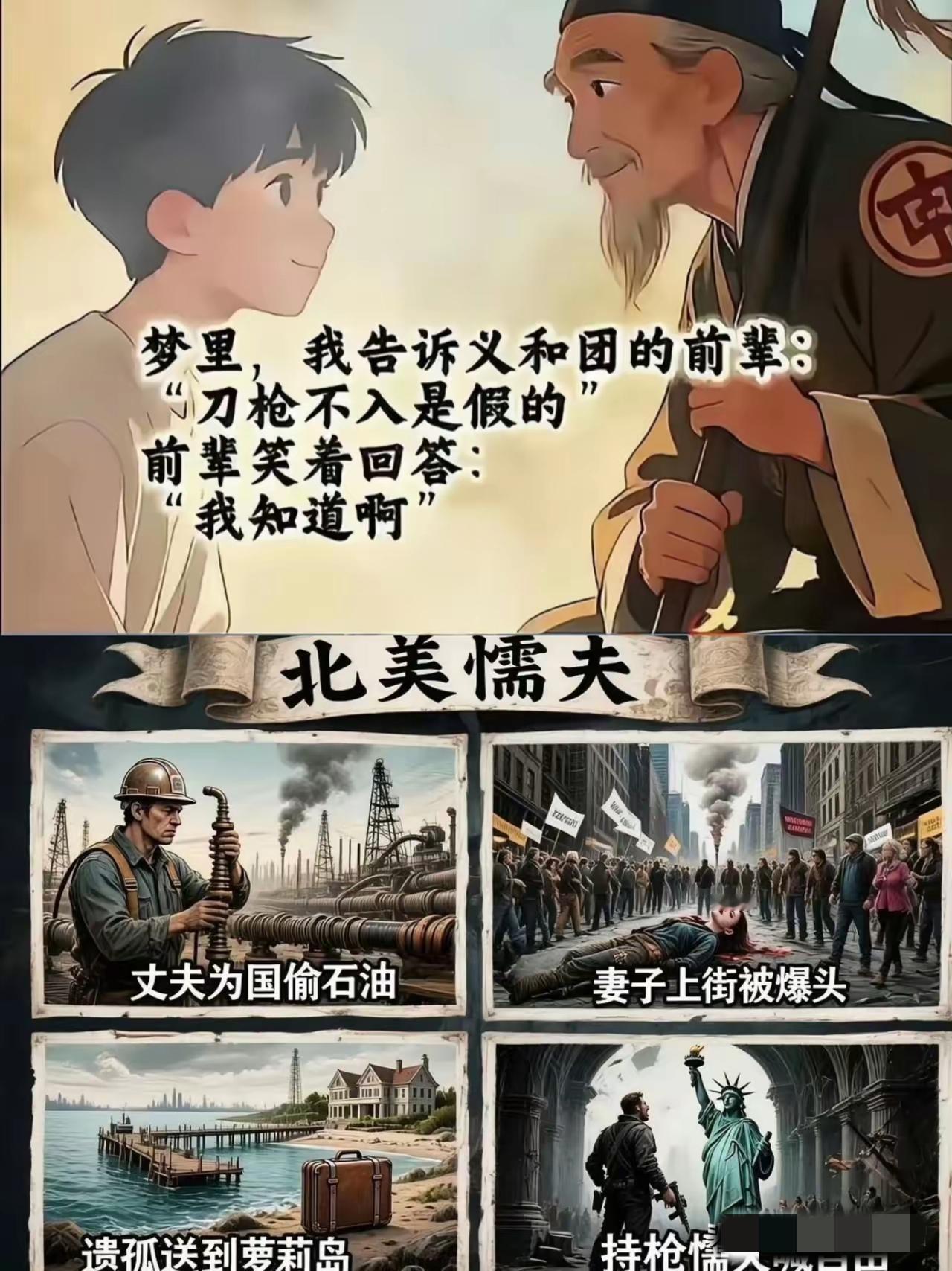 总有人拿义和团“刀枪不入”的传说当笑话讲,说那是愚昧,是封建迷信。 我就问问你,要是洋人的洋枪洋炮都架到家门口了,连孩子都被他们祸害了,朝廷还在那装死,你手里只有把破大刀,你怕不怕? 怕,当然怕。是人都会怕。但怕到极点,退无可退的时候,那股血涌上来,怕就变成了恨,变成了豁出一切的蛮勇。“刀枪不入”这四个字,我们今天听着荒唐,可你把它放回1900年前后华北那片绝望的土壤里,它就不仅仅是迷信了。那是绝境里的人,能给自己的唯一一剂“精神兴奋剂”。 你得看看那时候的百姓过的是什么日子。教堂势力在某些地方一手遮天,教民与非教民冲突不断,朝廷软弱,一味偏袒洋人。旱灾蝗灾接连不断,庄稼颗粒无收,眼看就是一条死路。洋人(侵略者)的铁路修过来,破了“龙脉”;电线杆子竖起来,坏了“风水”。 在深受传统农耕文化影响的农民眼里,这不仅仅是土地被占,更是整个生存的根基和信仰的世界正在崩塌。朝廷指望不上,官府帮着洋人,老天爷也不给活路。这时候,有人告诉你,练一种“神拳”,请来关公、赵云、孙悟空附体,就能肉身挡子弹,你会不会信?哪怕将信将疑,那也是漆黑深渊里看到的唯一一根绳子,你得拼命抓住它。 所以,“刀枪不入”首先是一种话语,一种在绝对力量劣势下,为自己壮胆、凝聚人心的口号。它的核心不是物理上的相信血肉真能挡住子弹,而是精神上的“不怕”。当一群人真的相信(或强迫自己相信)神灵附体、水火不侵时,他们冲锋时的勇气和疯狂,是远超常人的。这本质上是一种极端处境下被逼出来的精神防御机制,用超现实的神秘主义,来对抗压倒性的现实恐惧和军事劣势。 我们站在一百多年后,拿着物理教科书和军事常识,去嘲笑他们“愚昧”,这其实是一种傲慢。我们嘲笑的对象,不是具体的知识欠缺,而是那种在彻底的无助和愤怒中,人性迸发出的、近乎悲壮的自我催眠。 他们难道真的不知道枪炮厉害?前线的人死了一片又一片,后面的人照样往上冲,仅仅用“愚昧”解释得通吗?更深层的原因是,横竖都是死,跪着死在家里饿死,不如站着冲向教堂、冲向铁道,死前喊一嗓子“刀枪不入”,起码感觉自己像个“人”,在反抗。 当然,我们必须清醒区分两点。一是义和团民众反抗的正义性(抵御侵略与压迫),二是其手段的落后性与盲目排外(波及近代文明成果和滥杀)。清廷利用其“扶清灭洋”,又在其失败后残酷镇压,更显其反动与虚伪。把“刀枪不入”单独拎出来当笑话,实质上是抽离了全部历史语境和人间血泪,只留下一个空洞滑稽的符号,这无疑是对历史中那些挣扎的亡魂的轻薄。 归根结底,“刀枪不入”是一个悲剧性的符号。它映照出的,是底层民众在双重压迫(外来侵略与封建腐朽)下,信息闭塞、毫无出路时,那种扭曲而惨烈的反抗姿态。嘲笑他们“愚昧”很容易,但更该问的是:是谁,把成千上万的普通人,逼到了只能依靠这种“愚昧”来获取勇气的绝境? 各位读者你们怎么看?欢迎在评论区讨论。